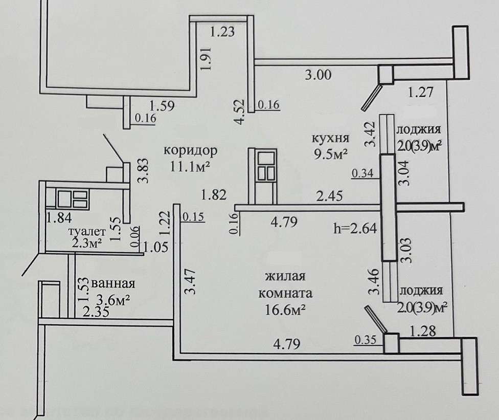 4 этаж /18 этажного жилого дома. Год постройки 2025. Площадь общая 47.1 , жилая 16.6, просторная кухня 9.5 м2. Две лоджии по 3.9 м2 с железобетонными экранами.