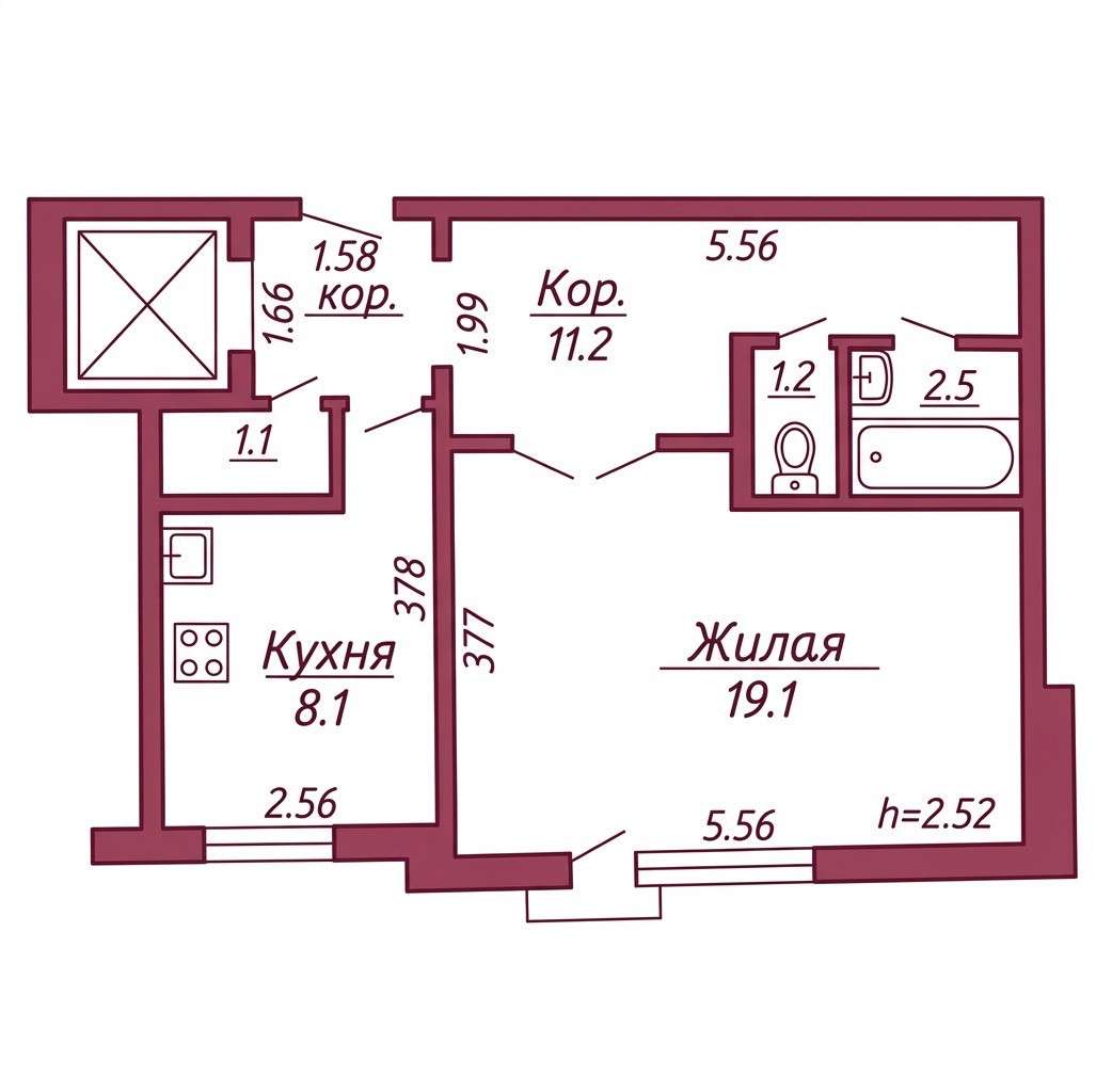 Параметры квартиры: общая площадь- 43,2 кв м жилая площадь- 19.1 кв м, кухня-8.1 кв м.