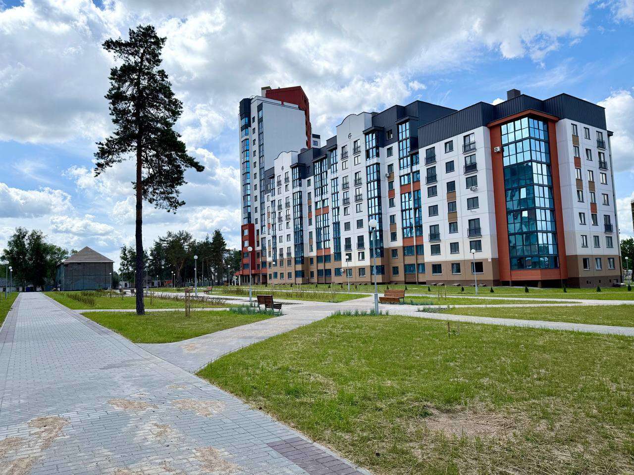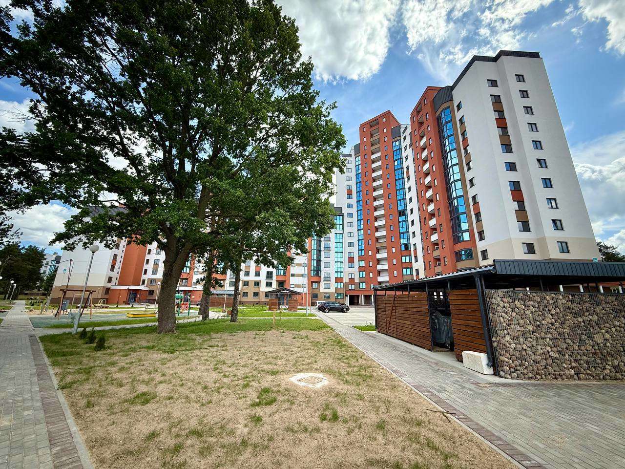 Прямо у дома много зелени, лесопарковая зона, р. Лососянка, большая площадка для детей без движения авто по двору, большая авто/велопарковка, большая стоянка для авто.