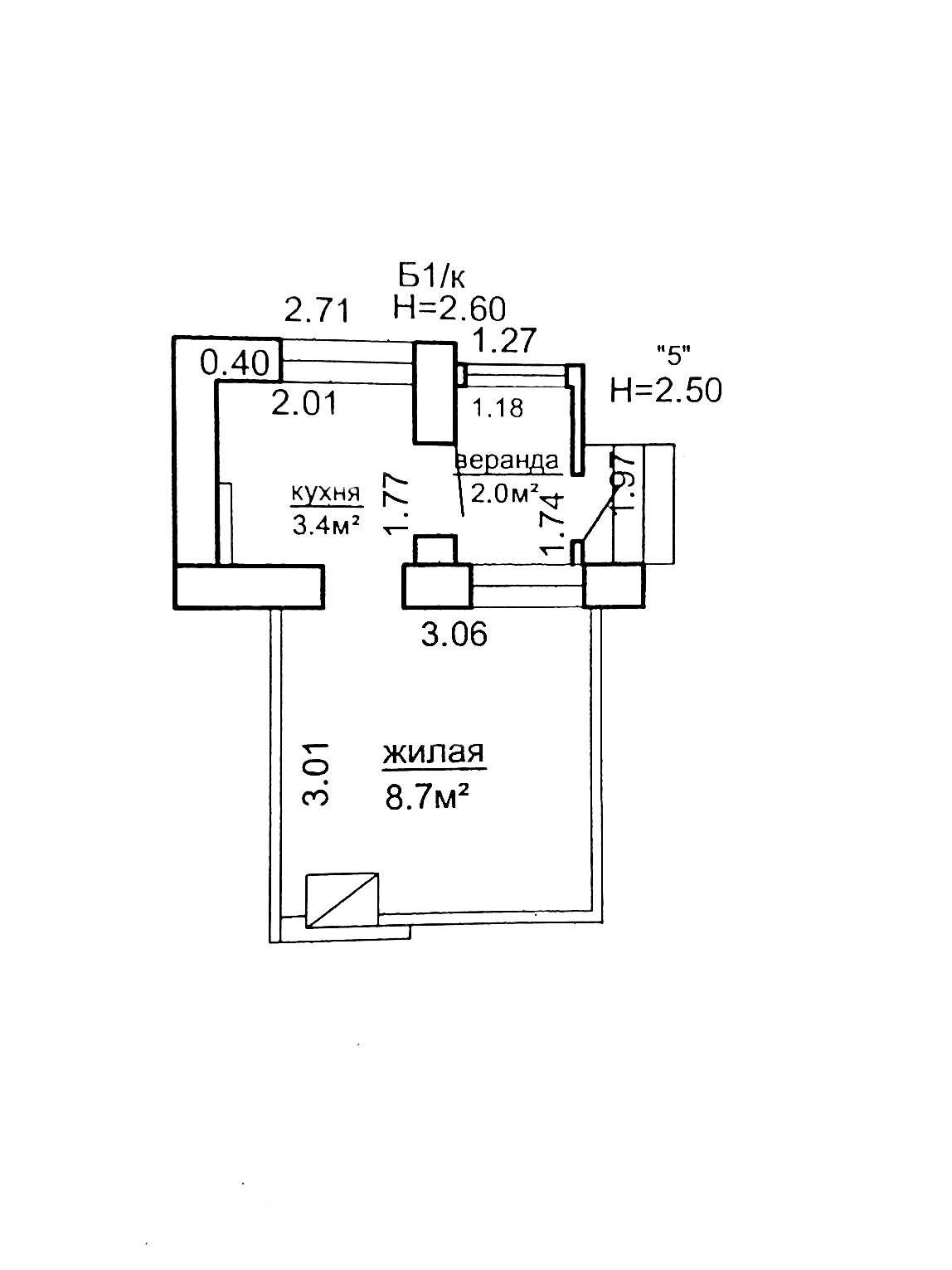 Общая площадь – 14,1 кв. м., жилая – 8,7 кв. м., кухня – 3,4 кв. м.
