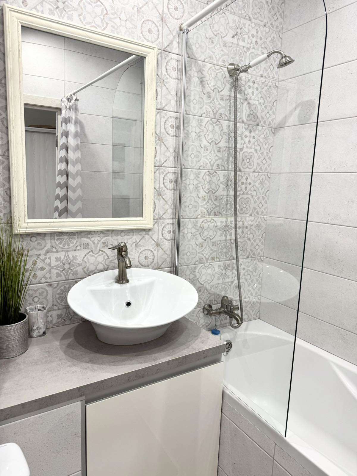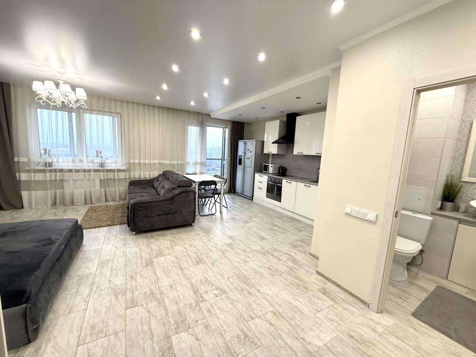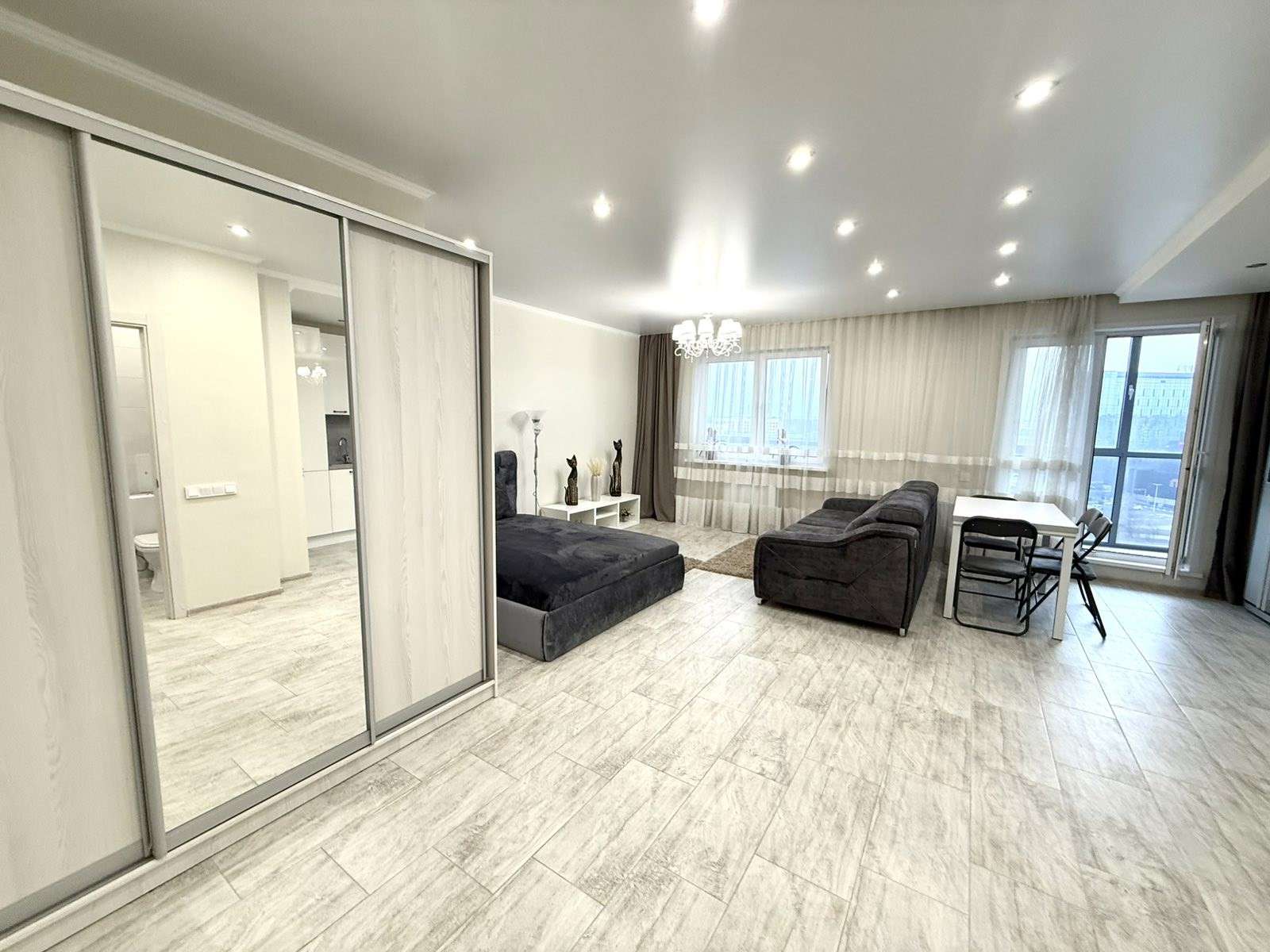 Просторная квартира студия общей площадью по СНБ 47 кв.м. в современном панельном доме 2020 года постройки на 11 этаже. В квартире выполнен качественный ремонт в светлых тонах, входная металлическая дверь, на полу керамогранит, шкаф-купе, встроенный кухонный гарнитур, посудомоечная и стиральная машина, духовой шкаф, установлен бойлер. Большая панорамная остекленная лоджия с видом на ТЦ Тринити. Вся мебель и техника остаются. Квартира полностью готова к проживанию. Также это идеальный вариант под инвестицию. Эта квартира на высоком этаже привлекательна для туристов города при краткосрочной аренде.
