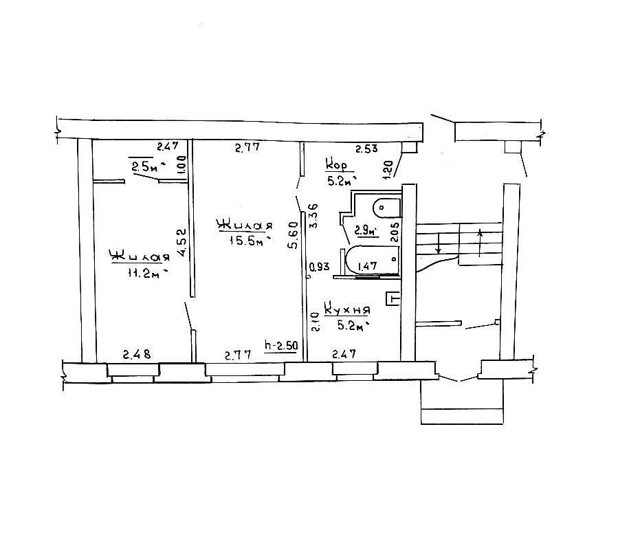 Параметры квартиры: общая площадь- 42,5 кв м жилая площадь- 29,2 кв м, кухня- 5,2 кв м.