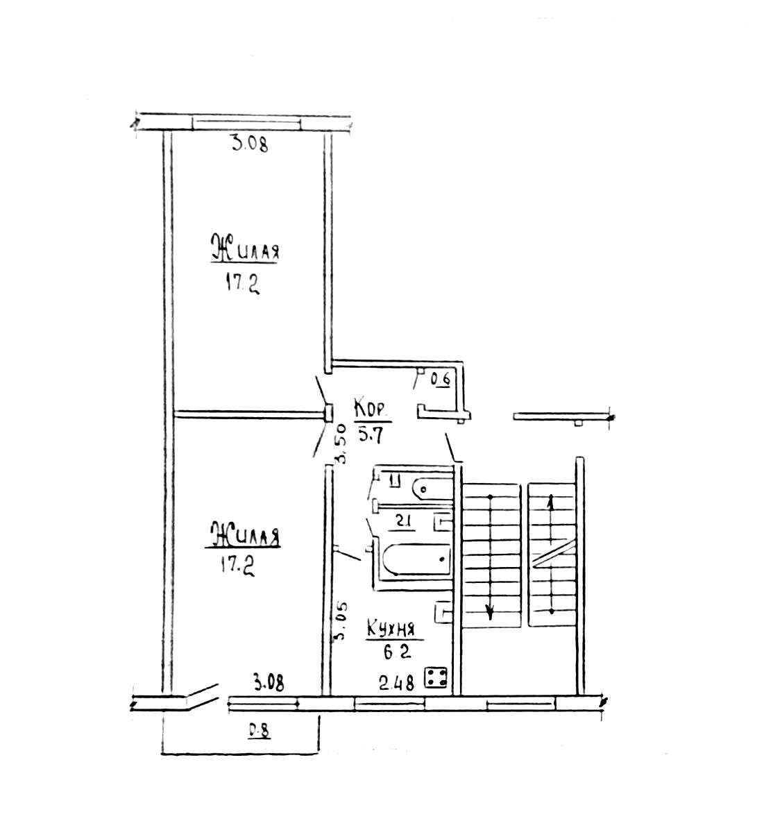 Общая площадь 50,1/жилая 34,4/кухня 6,2м, высота потолка 2,52 м.