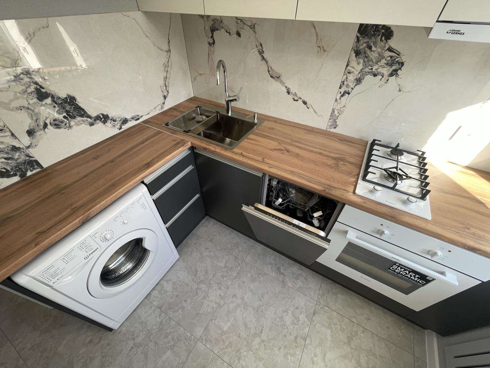 - новая кухня, укомплектована посудомоечной машиной, доводчиками и подсветкой рабочей зоны