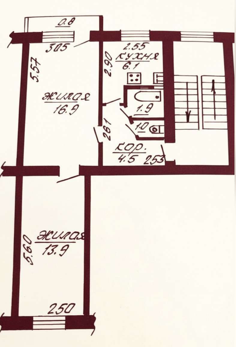 2х-комнатная квартира рядом с центром города, расположенная на 4м этаже 5ти этажного кирпичного дома 1966 года постройки. 2 просторные комнаты 16,9 и 13,9 кв.м. на противоположные стороны дома. Есть остекленный алюминиевой рамой балкон. Частично окна ПВХ. Центральное водоснабжение. Квартира без современного ремонта, но в очень аккуратном состоянии, раздельный санузел облицован плиткой, на кухне установлен кухонный гарнитур и газовая плита. Имеется подвал. Дом очень теплый кирпичный. Рядом магазины, сады, мини-рынок. В пешей доступности Парк Жилибера. Отличный вариант для жизни, также подойдет для краткосрочной аренды, ведь данная локация пользуется высоким спросом.