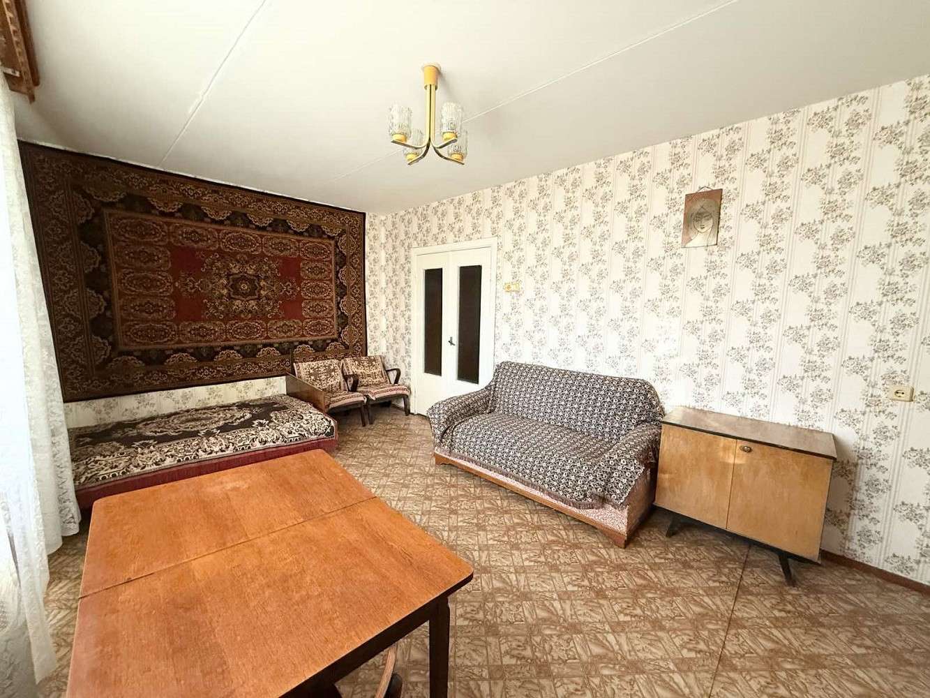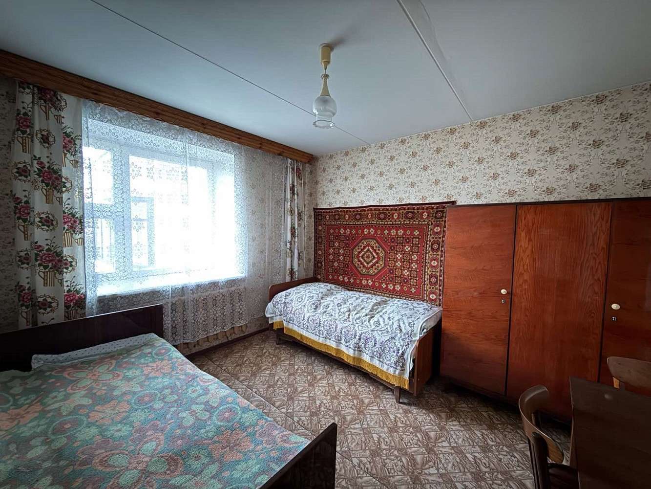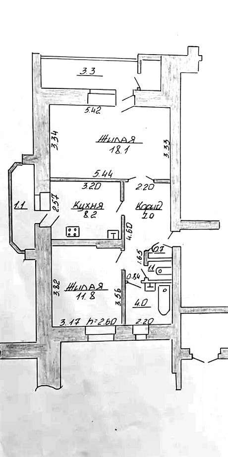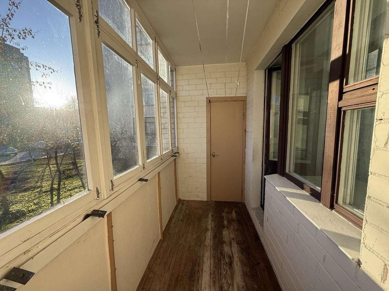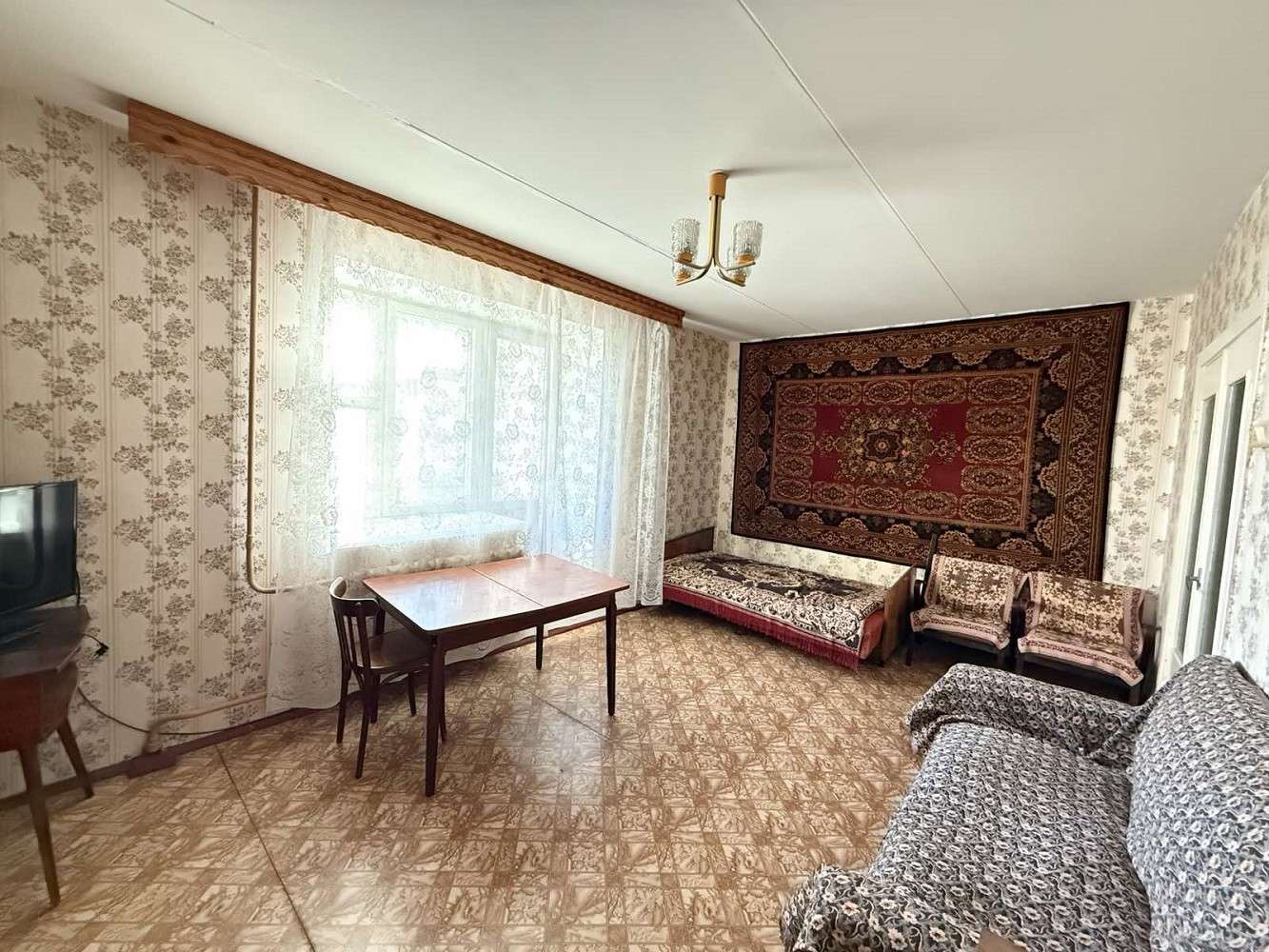 Функциональная и удобная планировка квартиры: общая площадь - 51.8 метров квадратных, жилая – 29.9 метров квадратных, кухня - 8.2 метров квадратных. Квартира в жилом, но устаревшем состоянии: на полу линолеум, деревянные оконные рамы. Просторная лоджия с деревянным настилом и кладовой. Также есть балкон, выход из кухни, застеклен. Санузел раздельный.