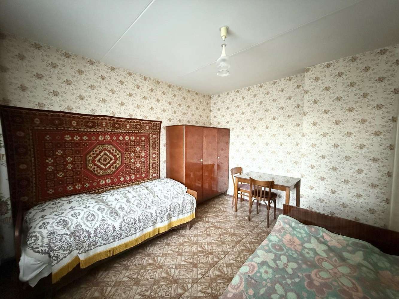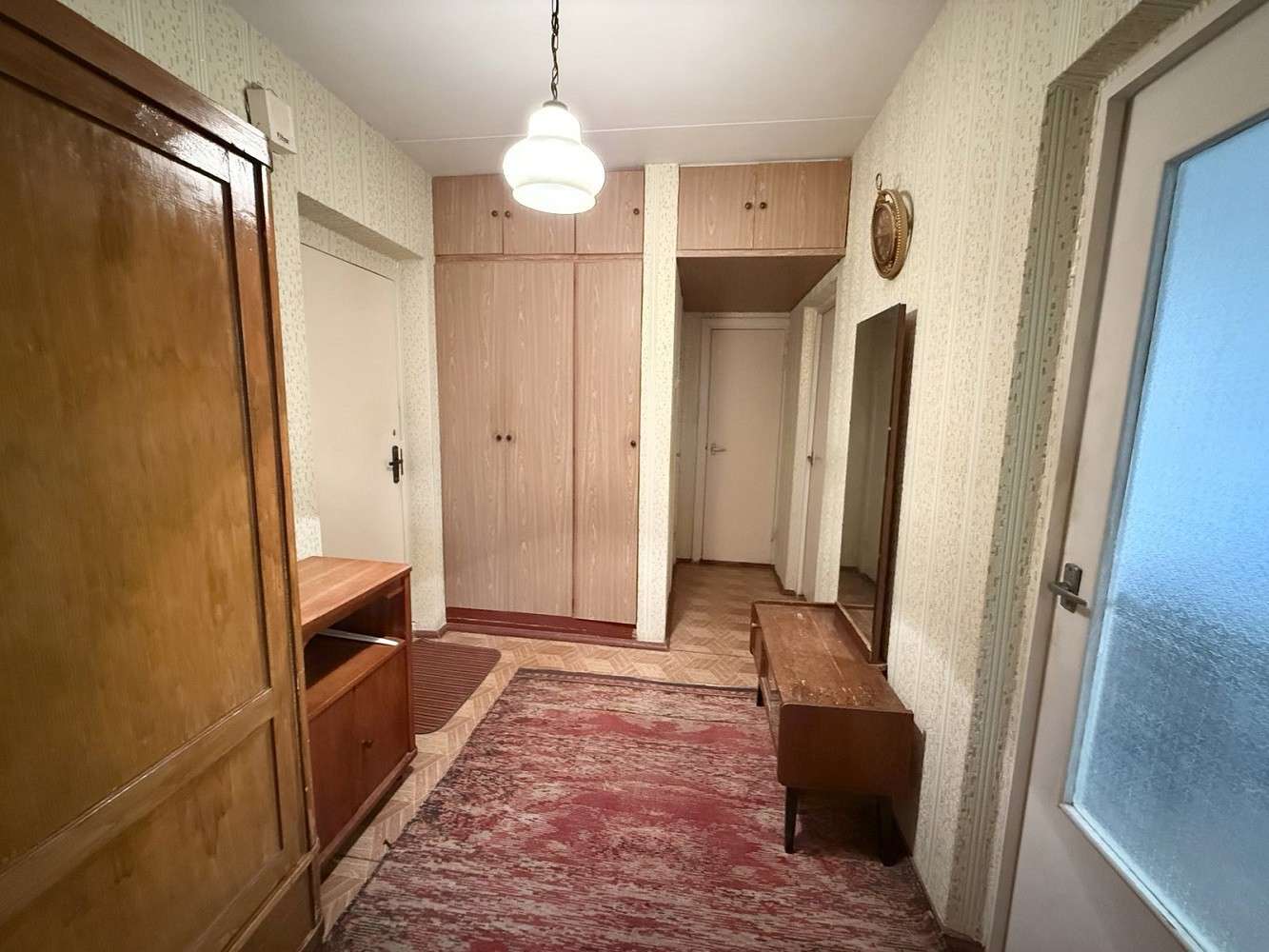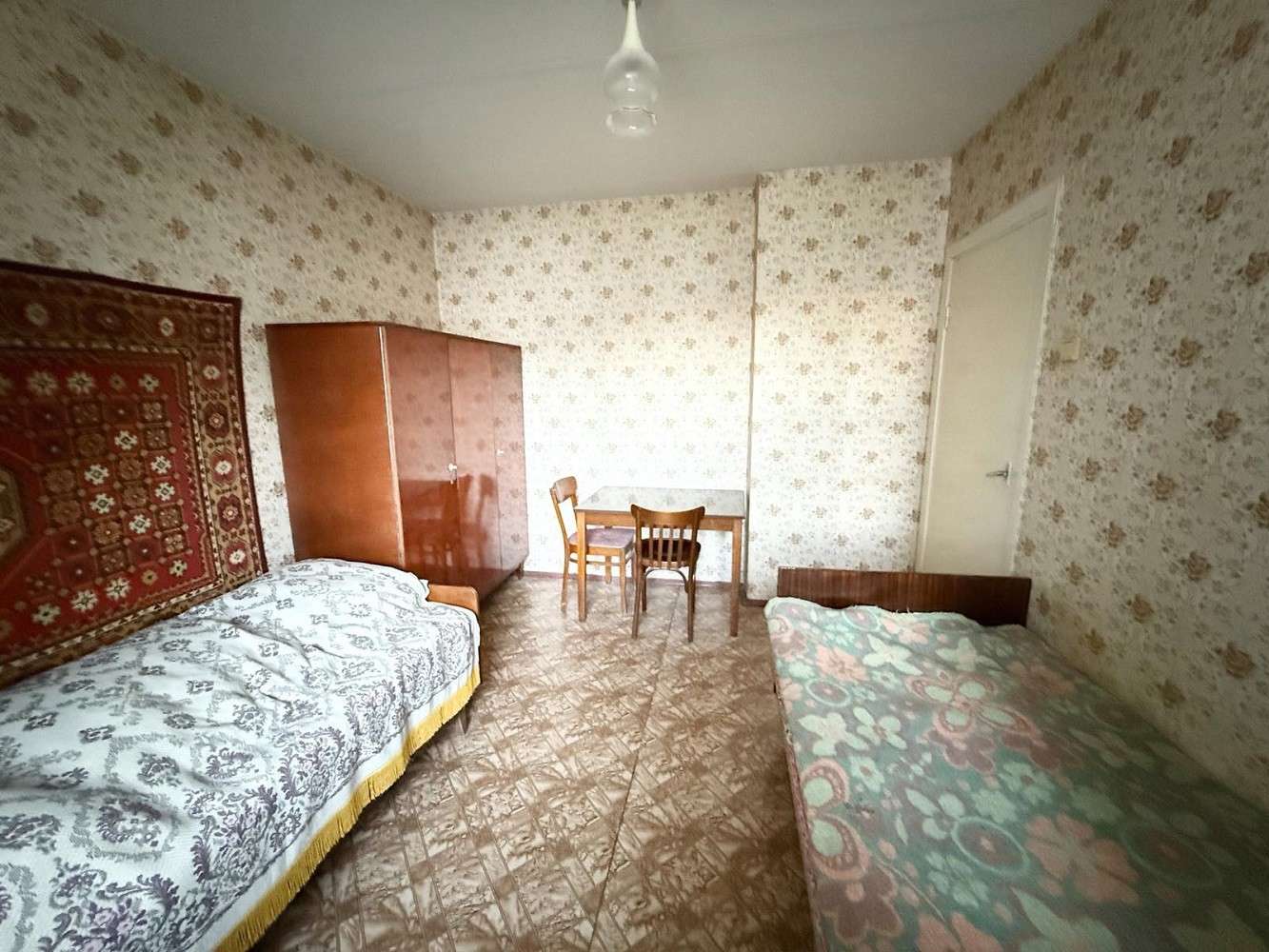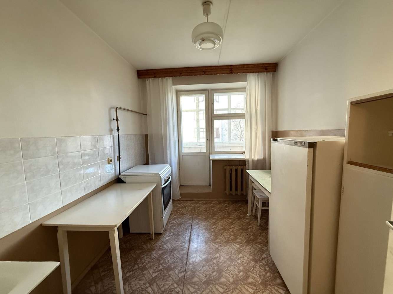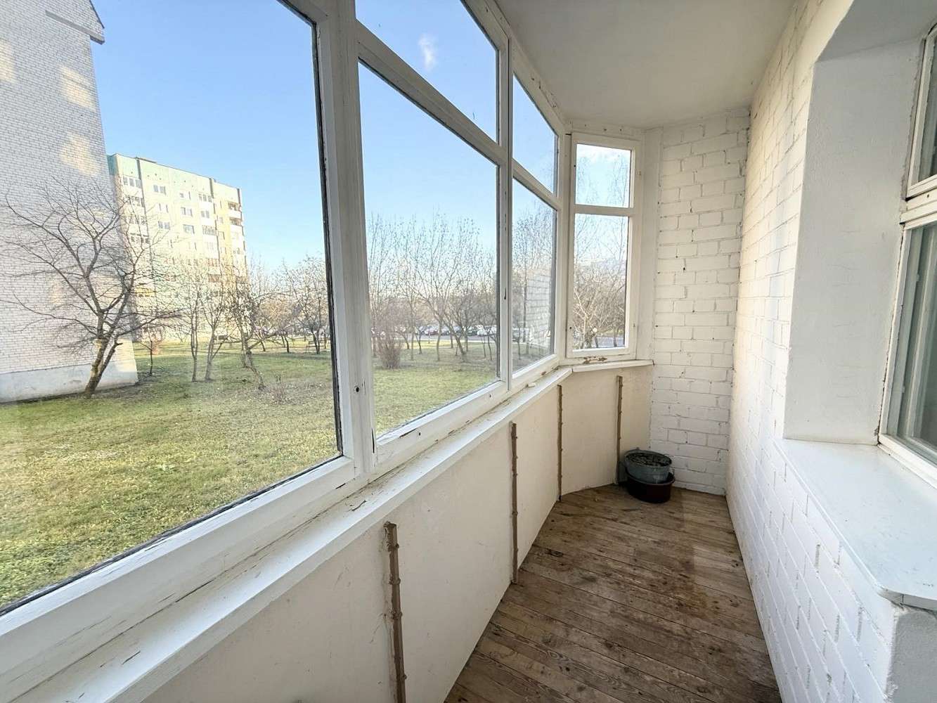 Функциональная и удобная планировка квартиры: общая площадь - 51.8 метров квадратных, жилая – 29.9 метров квадратных, кухня - 8.2 метров квадратных. Квартира в жилом, но устаревшем состоянии: на полу линолеум, деревянные оконные рамы. Просторная лоджия с деревянным настилом и кладовой. Также есть балкон, выход из кухни, застеклен. Санузел раздельный.