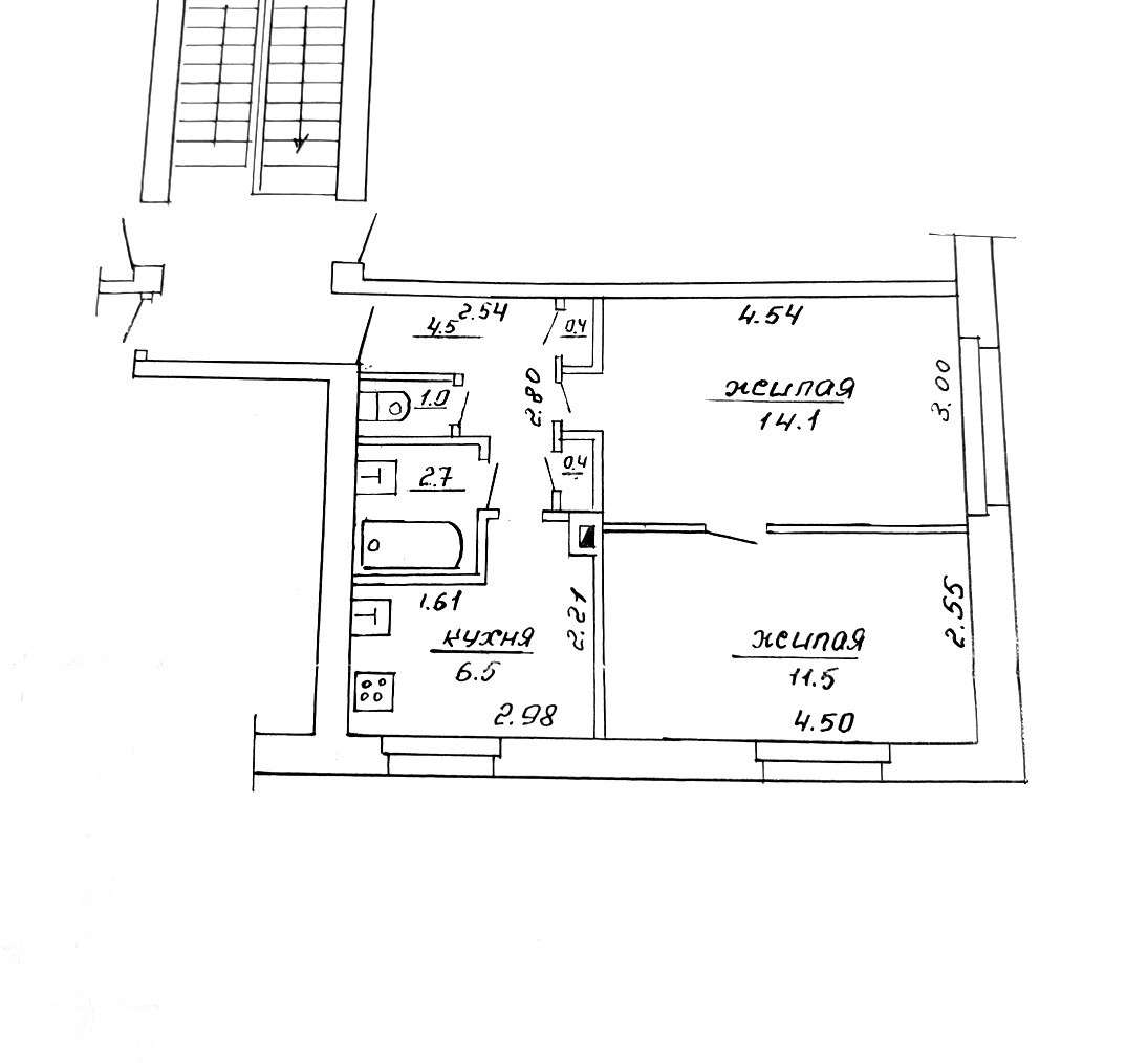 Общая площадь 41.1 м.кв., жилая 25.6 м.кв, кухня 6.5 м.кв. Высота потолка 2.5 м. С/у совмещенный.