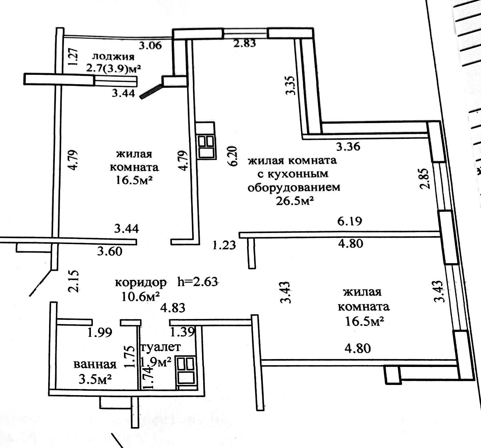 Параметры квартиры: площадь – общая (по СНБ) 78.2 кв.м., жилая – 59.5 кв.м., кухня – гостиная -26.5 кв. м. Квартира со свежим современным ремонтом. Готова к заселению! Продаётся практически со всей мебелью и техникой. В прихожей расположен вместительный шкаф. Металлическая входная дверь. Материал полов – ламинат, плитка (прихожая, кухня).Санузел облицован плиткой.. Качественный кухонный гарнитур со встроенной бытовой техникой. Просторная застеклённая лоджия с выходом из спальной комнаты. По периметру дома установлена система видеонаблюдения. Большая детская игровая площадка. Дом обслуживает эффективное товарищество собственников: к вашим услугам свой председатель, сантехник, электрик, бухгалтер, которые по первому звонку помогут решить вопросы. Коллектив сознательных жильцов. За дополнительной информацией просьба обращаться по телефону. Возможен торг. Поможем продать Вашу недвижимость для приобретения этой.