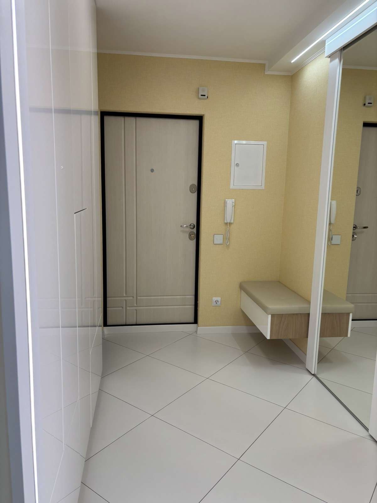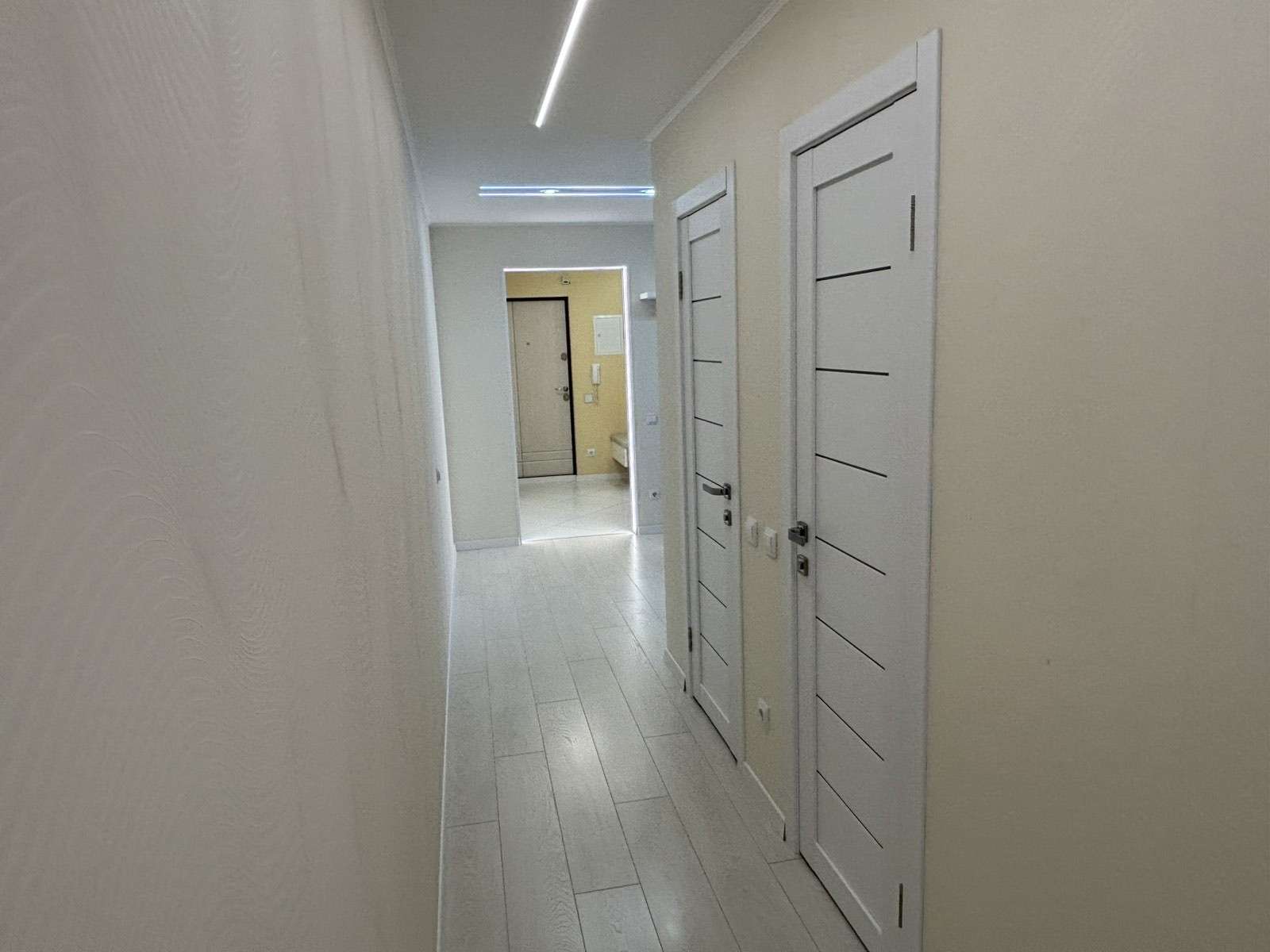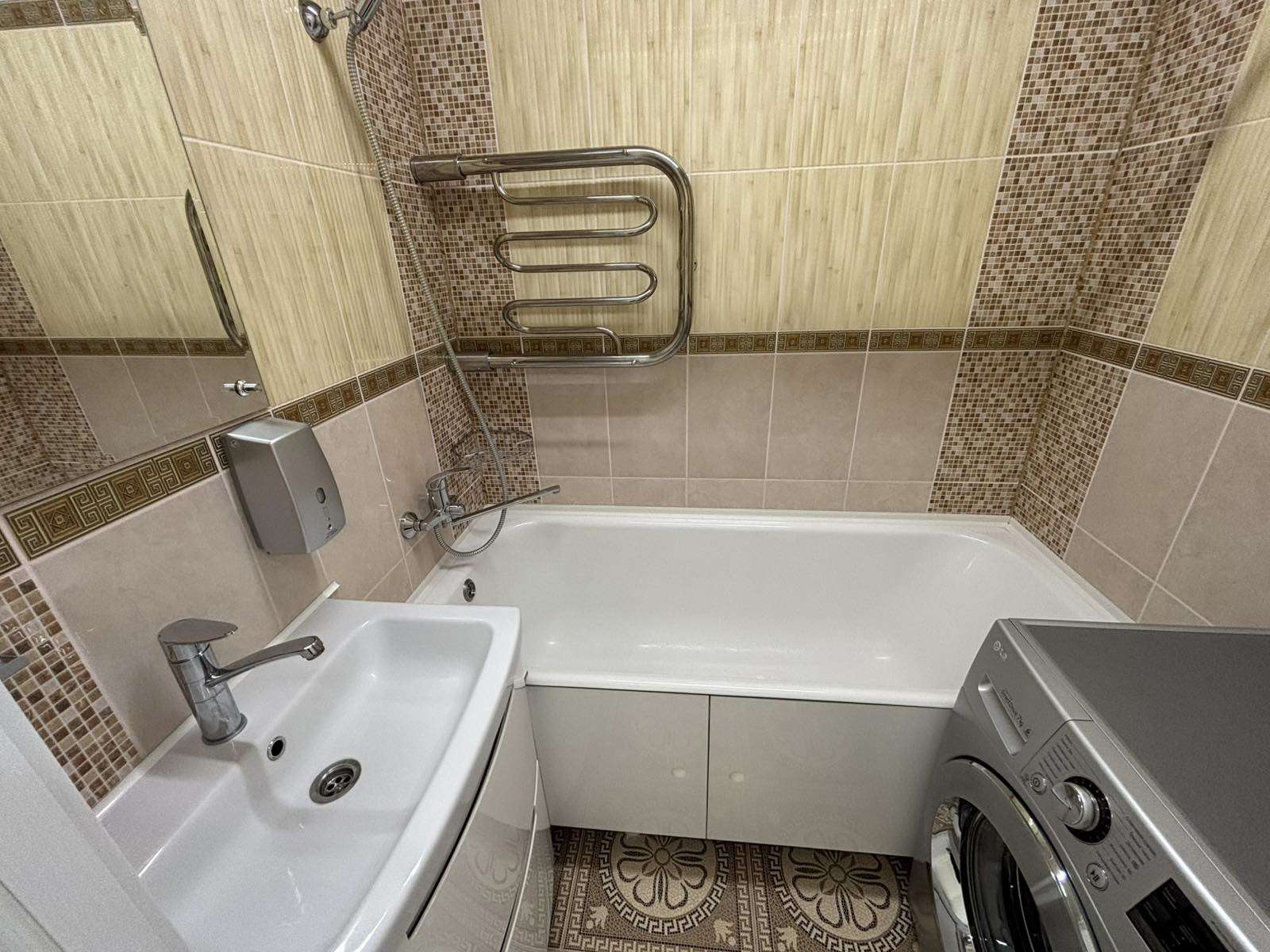 2 этаж 9-ти. этажного дома 1978 года постройки. Общая площадь 73.4. кв.м., жилая 41,3 кв.м., кухня 8.1 кв.м. Окна – ПВХ. На кухне уложен теплый пол. Сан. узел раздельный, облицован плиткой, установлен бойлер. Материал полов – плитка, ламинат. В квартире остается новая кухня с встроенной бытовой техникой BOSCH, посудомоечная машинка. Встроенная мебель.