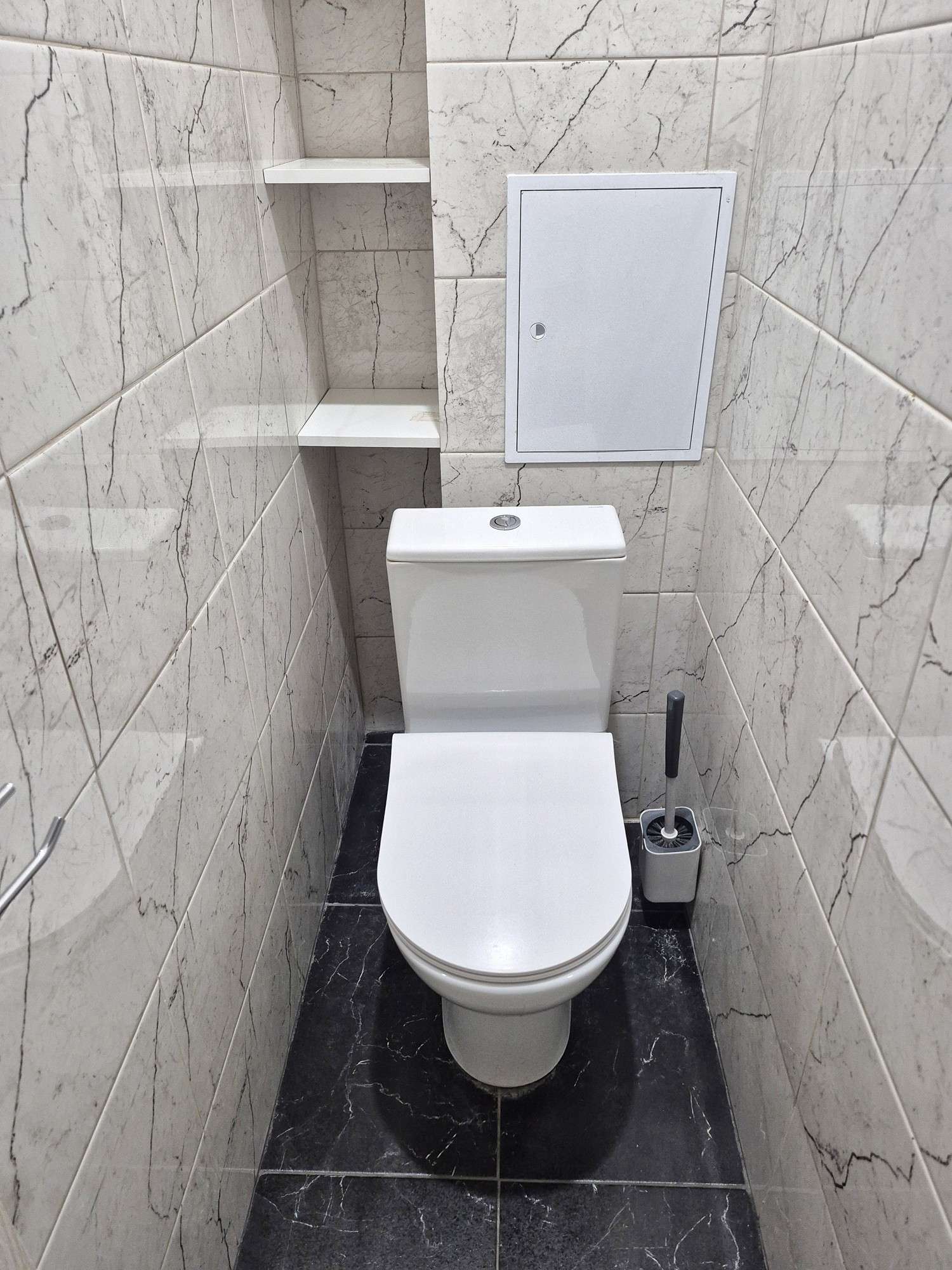 В квартире сделан новый ремонт. Полы выровнены - (залита стяжка) и утеплены пенополистеролем 5 см. Заменена электропроводка (медная) и сантехника. На полу в кухне и коридоре лежит плитка, в жилых комнатах - ламинат. Стены оклеены обоями. Потолки ровные покрашены.