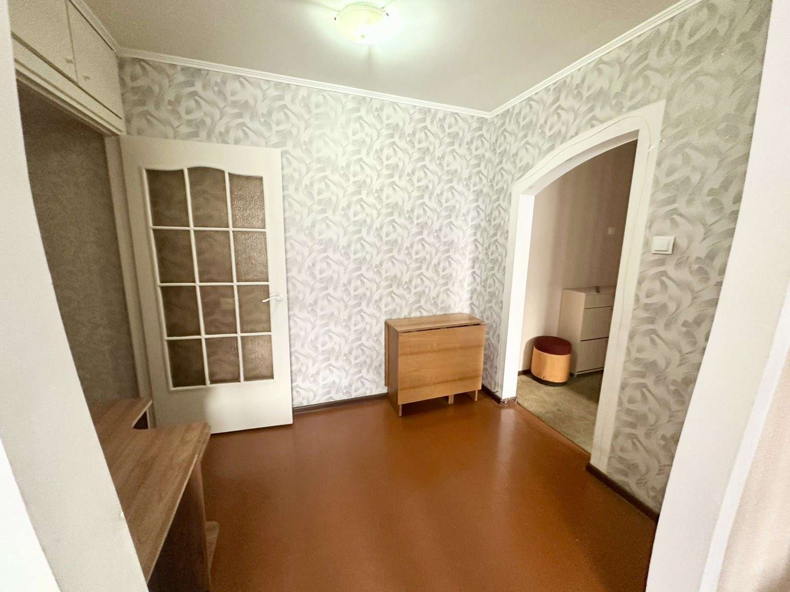 6 этаж 9-тиэтажного дома 1977 года постройки, материал стен – панель. Общая площадь 72.8 кв.м., жилая 42.8 кв.м., кухня 8.9кв.м. Окна – дерево. Сан. узел раздельный. Материал полов – ДСП.