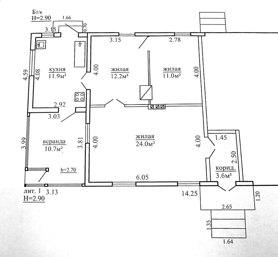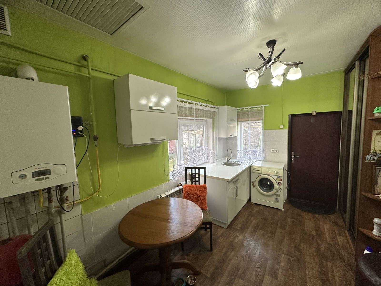 Дом 1938 года постройки, в 1983 была реконструкция, деревянный, крыша оцинкованная, окна ПВХ, отопление газовое, электричество, вода центральная, канализация местная. Общая площадь 62.7 кв.м., жилая – 47.2 кв.м., кухня 11.9 кв.м. Окна – ПВХ. Материал полов – линолеум, ДСП. Материал стен - обои. Большой шкаф-купе в прихожей. Новая кухня. Ухоженная придомовая территория. Участок 5,63соток.