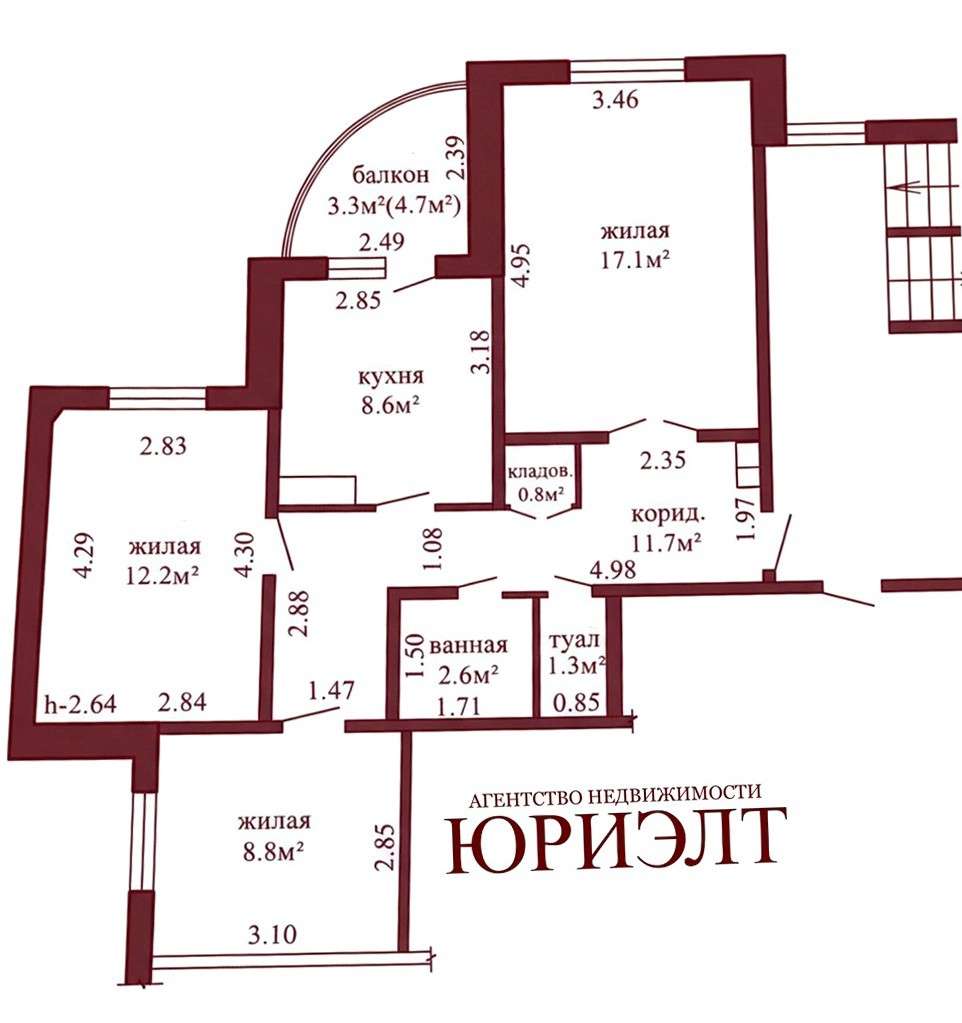 Функциональная и удобная планировка квартиры: общая площадь – 63.1 метров квадратных, жилая – 38.1 метров квадратных, кухня – 8.6 метров квадратных. Окна ПВХ. Санузел раздельный. Металлическая входная дверь. Балкон застеклен. За квартирой закреплен подвал.
