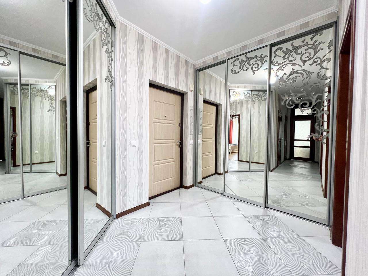 Квартира с качественным ремонтом из дорогих материалов в современном стиле, не стандартная свободная планировка, раздельный санузел, отдельная гардеробная и 2 больших вместительных шкаф-купе, 2 утепленных балкона с отделкой, оборудованы шкафами для хранения (один из них из кухни).