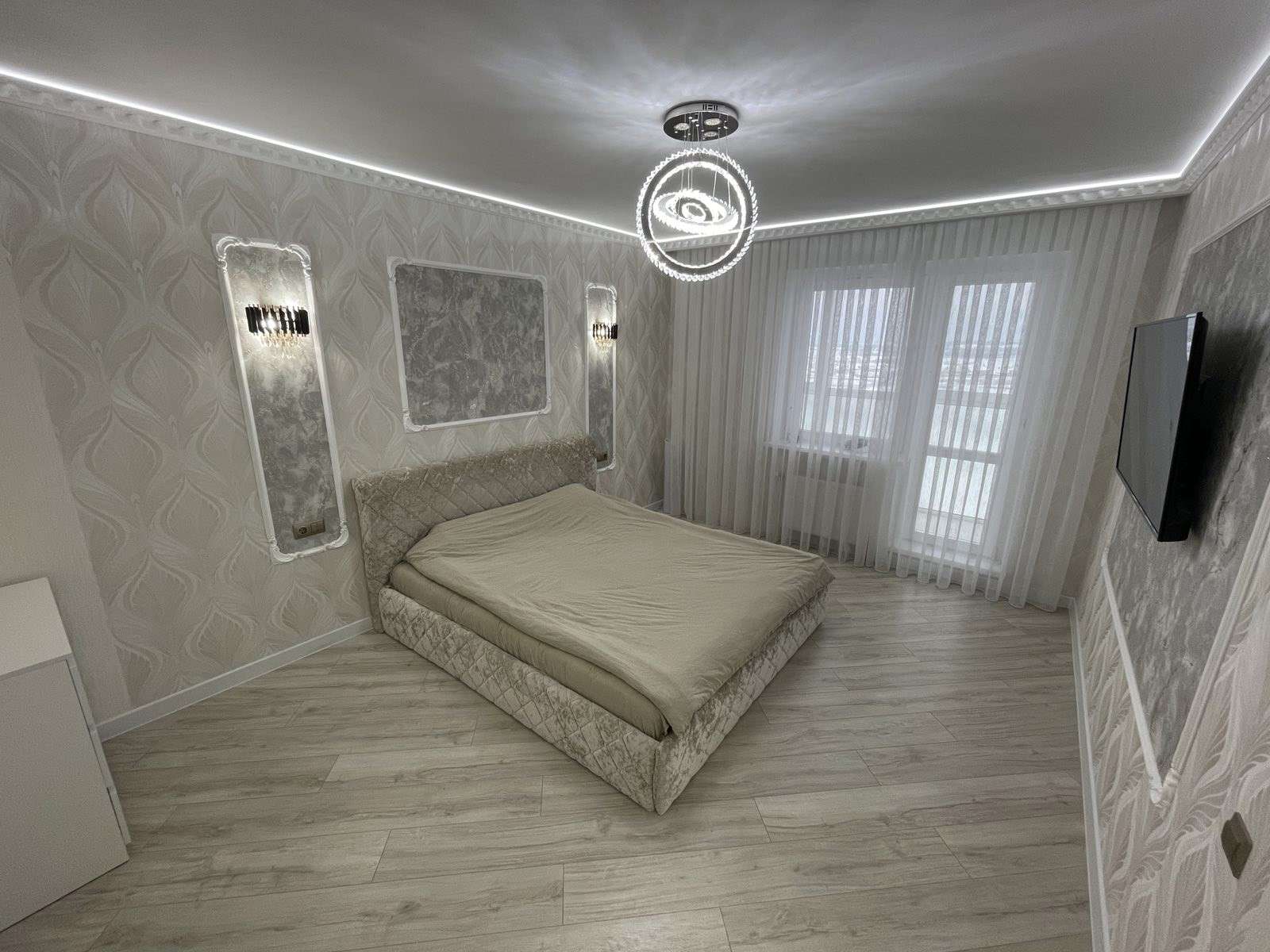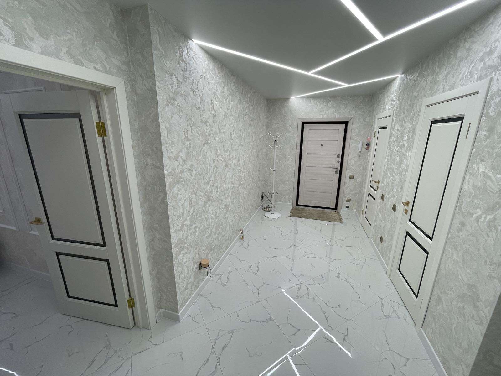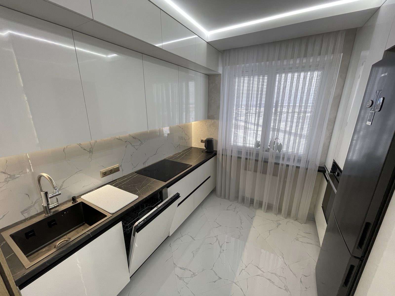 Выполнен дизайнерский ремонт с применением натуральных дорогостоящих материалов. В комплекте кухня со встроенной бытовой техникой !