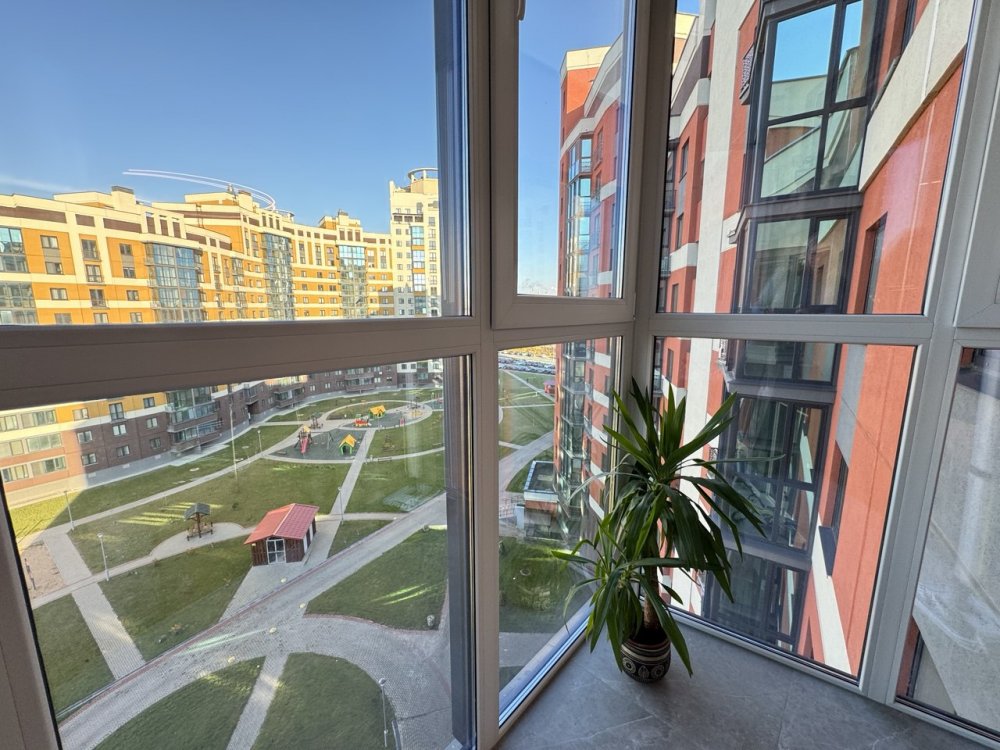 Новый микрорайон. Аккуратный подъезд, уютный двор, вблизи нет проезжей части , нет проблем с парковкой.