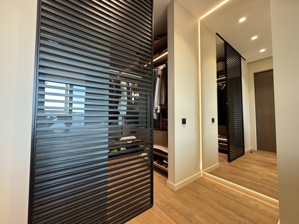 В квартире 3 встроенных больших шкафа с подсветкой внутри и вместительная гардеробная.