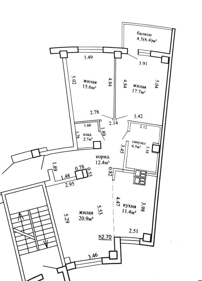 Общая площадь квартиры 91.7 м2, жилая - 54.2 м2, кухня - 11.4 м2. ( кухня совмещенная с гостиной комнатой 21м2).