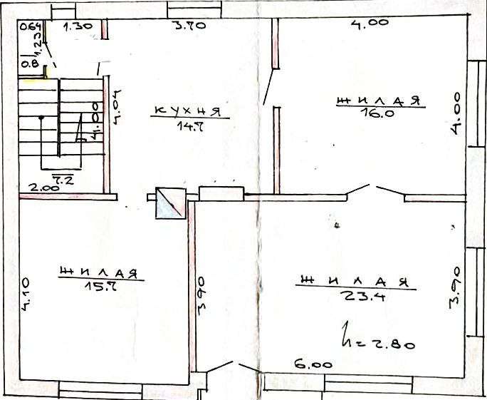 Общая площадь-69.8 кв.м, жилая- 55.1 кв.м.