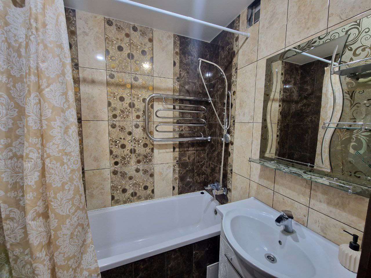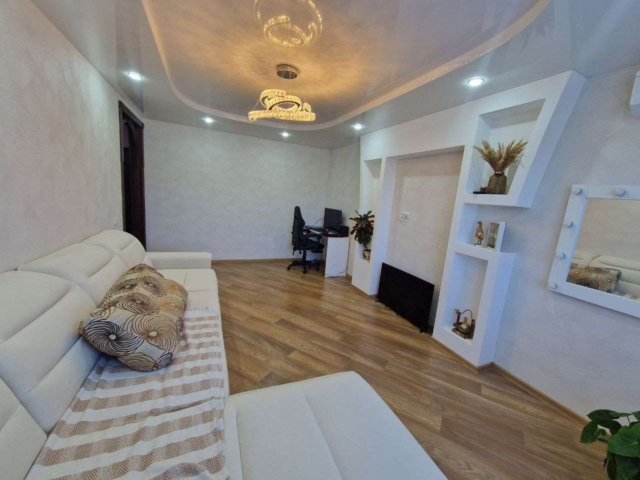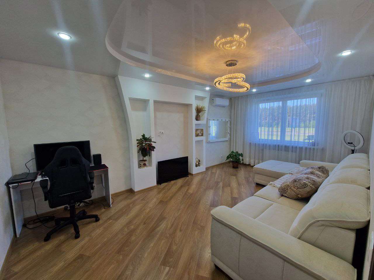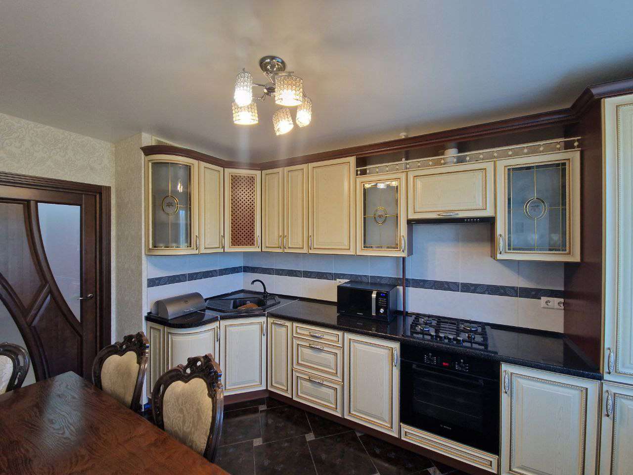 В квартире сделан современный ремонт из высококачественных материалов. Установлен кондиционер. Кухня изготовлена из натурального массива, уложена плитка на полу.