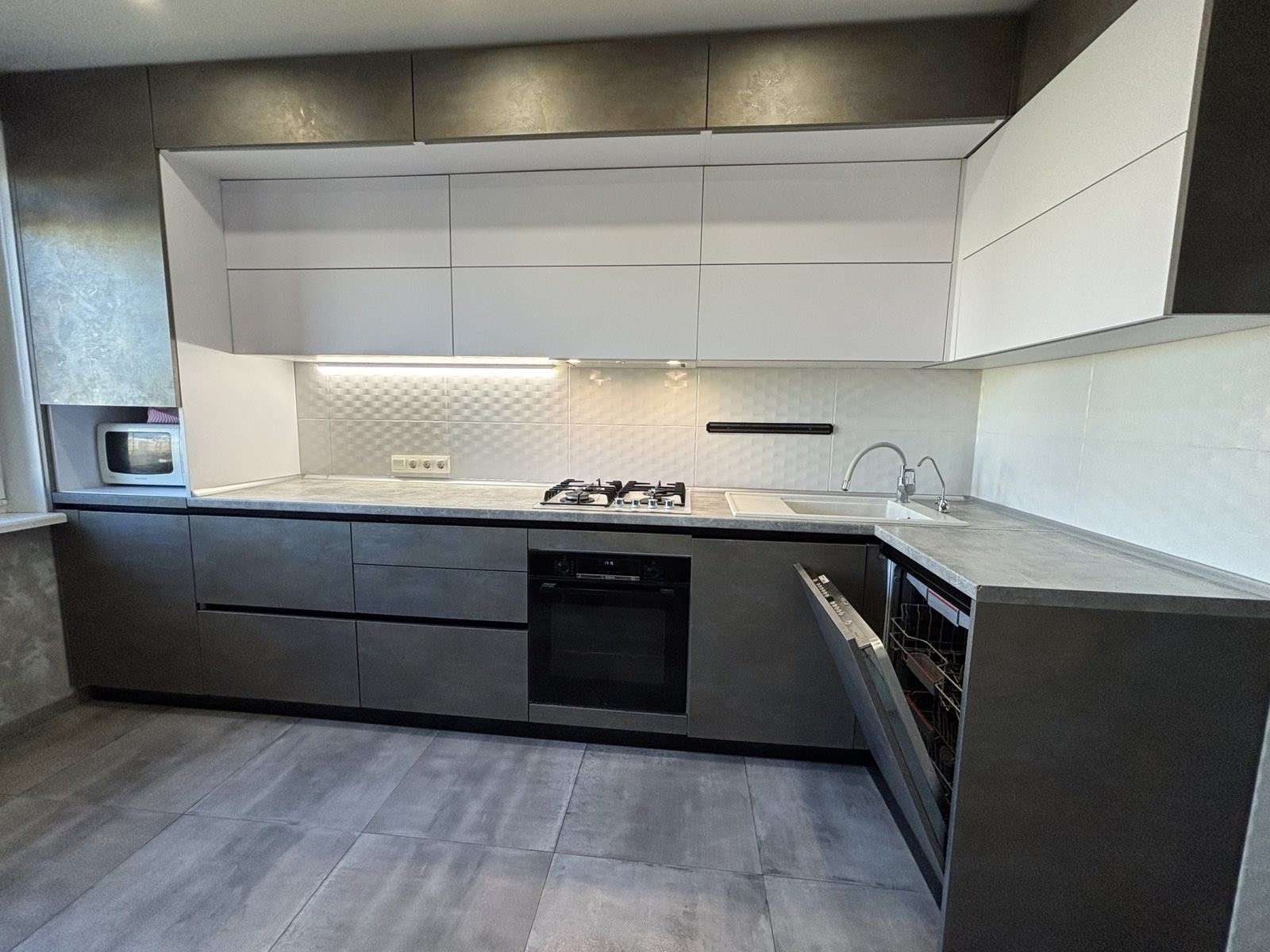 Остается встроенная кухня, шкафы.