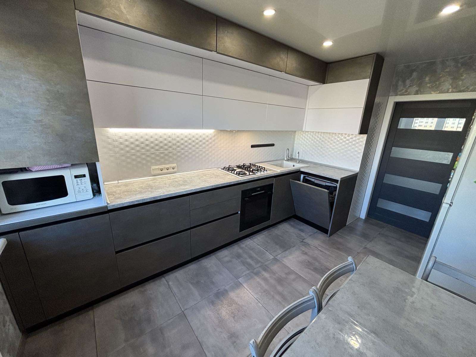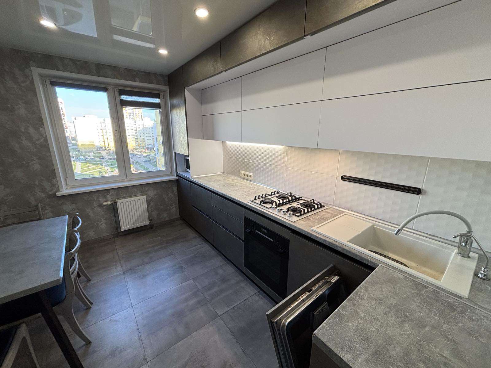 Остается встроенная кухня, шкафы.