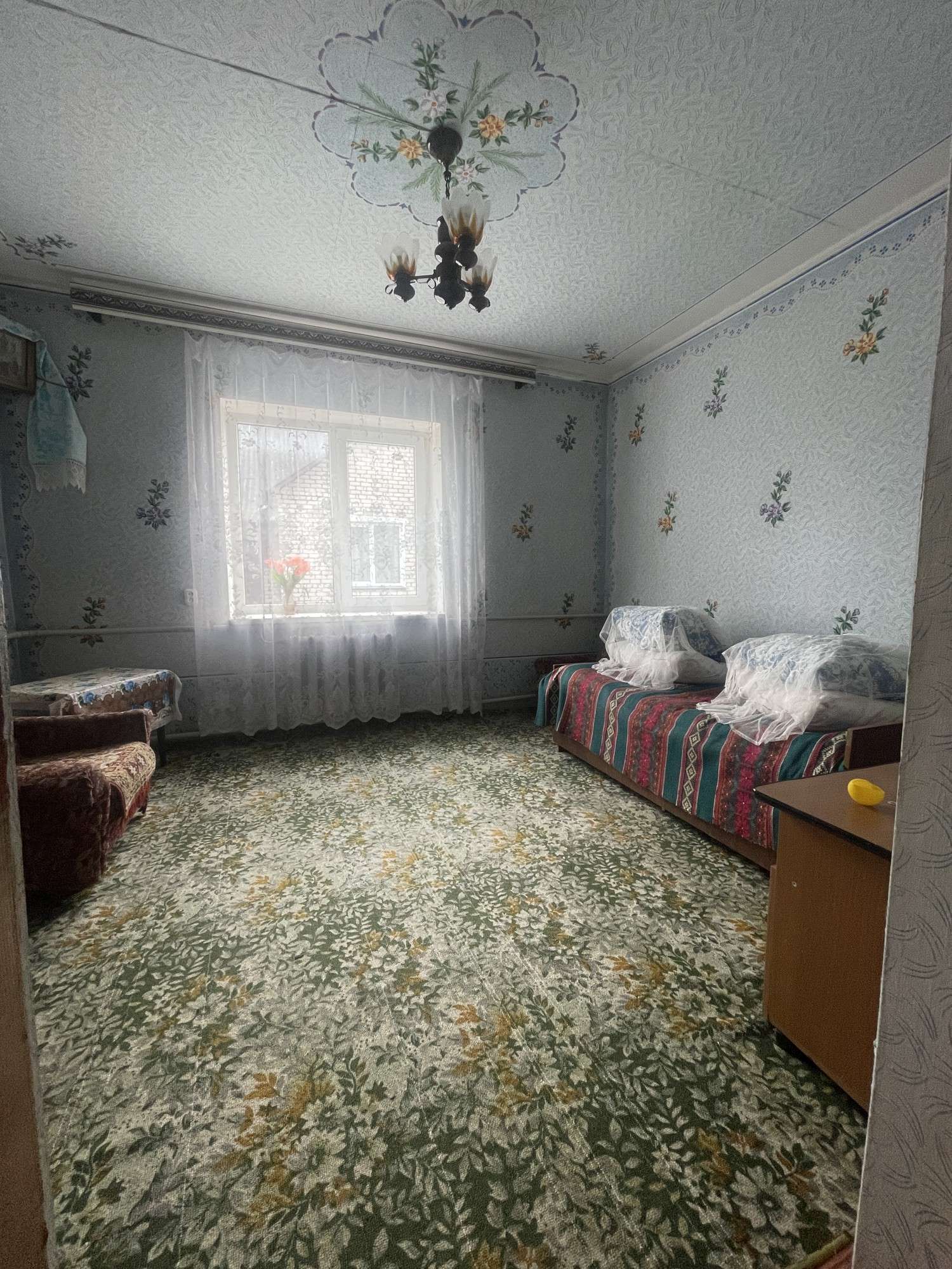 Дом представляется собой одноэтажное блочное строение, облицованное силикатным кирпичом. В доме имеется 3 изолированных комнаты и 2 проходные. Окна заменены на окна ПВХ. На кухне имеется доступ в большой подвал. Санузел совмещенный, но требующий ремонта. Отопление дома производится газовым напольным одноконтурным котлом, подогрев воды - газовой колонкой, проходящими своевременное техническое обслуживание. Также в доме имеется действующая печь с вместительной духовкой.