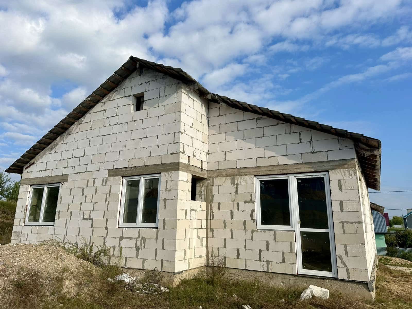 Дом блочный, фундамент ленточный, крыша металочерепица, окна ПВХ, все коммуникации центральные (вода, электричество, газ, оптоволокно) , канализация местная.