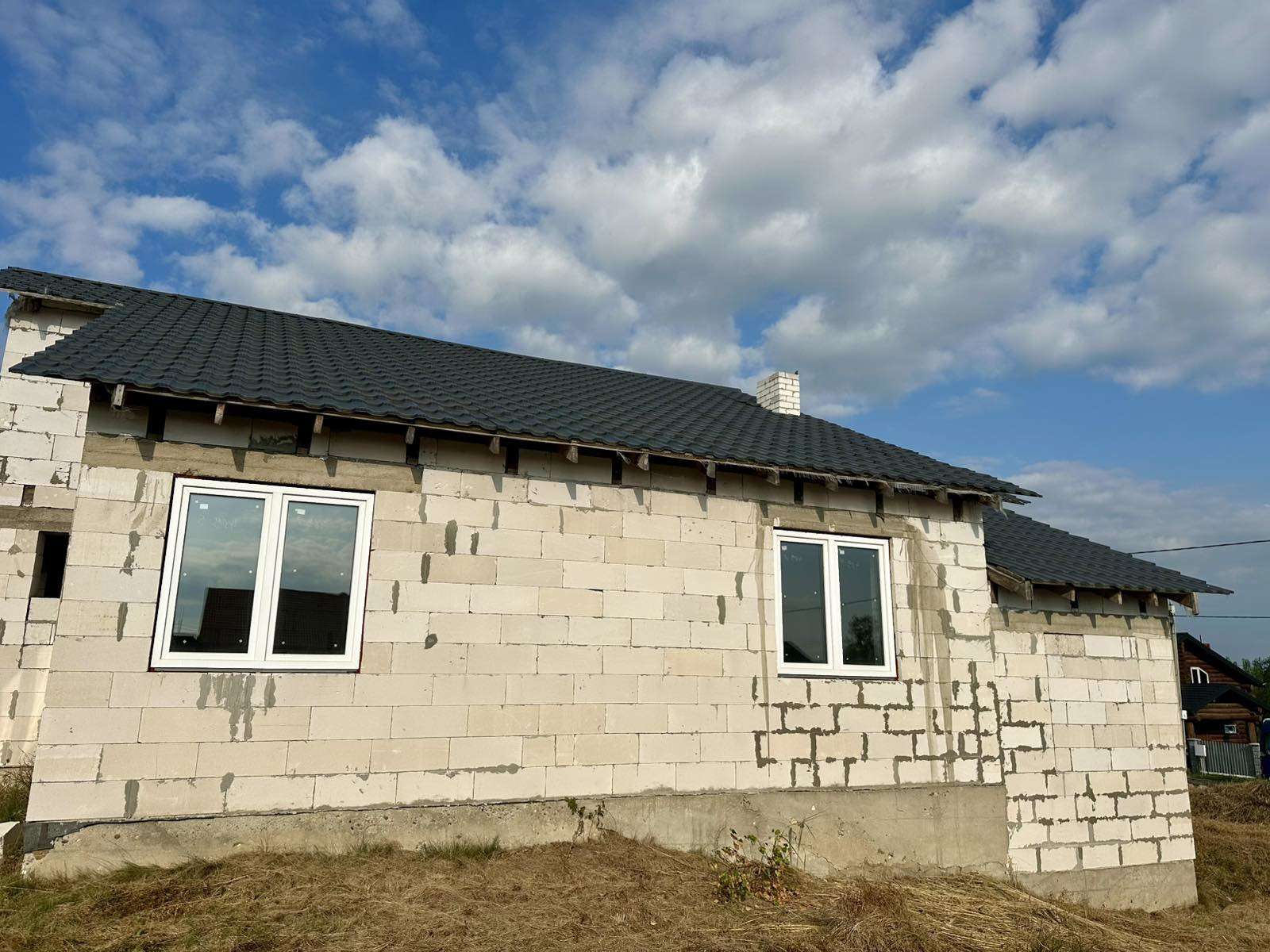 Дом блочный, фундамент ленточный, крыша металочерепица, окна ПВХ, все коммуникации центральные (вода, электричество, газ, оптоволокно) , канализация местная.