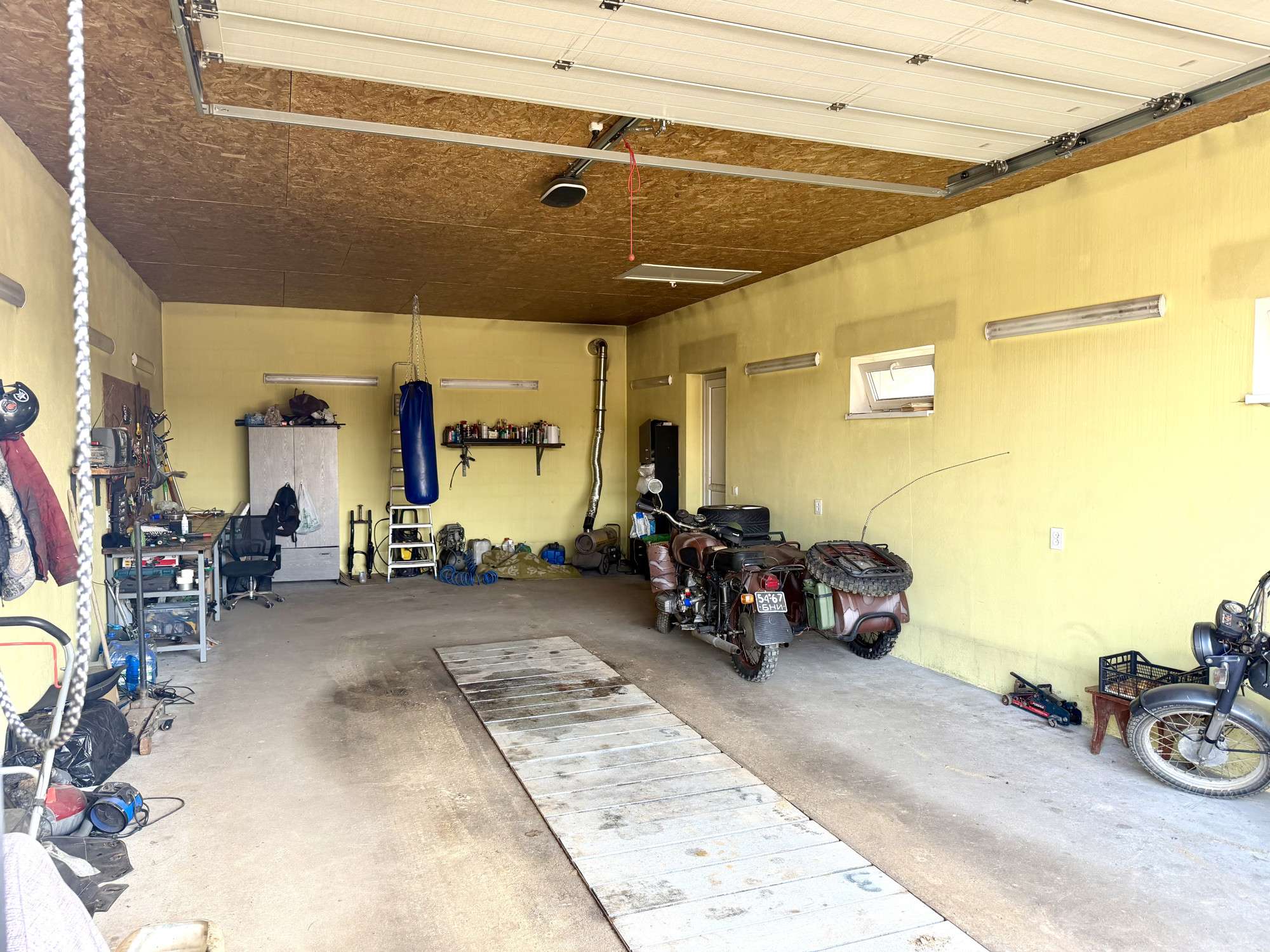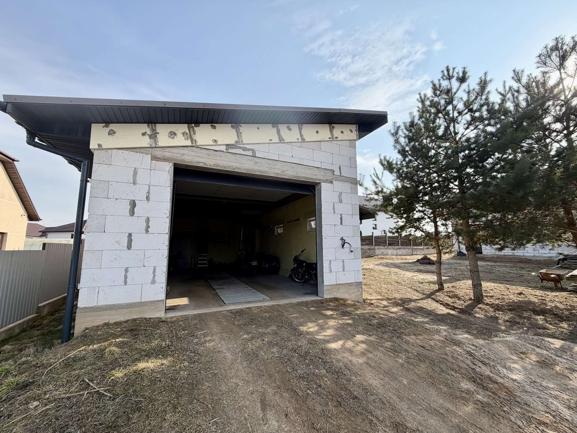 Отдельно стоящий высокий гараж, готов к эксплуатации. Площадь гаража 60 м 2. Фундамент-монолит. Имеется большая смотровая яма с подсветкой. Материал стен-газосиликатный блок 30 см. Крыша-металлочерепица бельгийского производства, утеплена. Установлены тёплые ворота фирмы «Алютех» с электроприводом. Окна ПВХ. Электричество 380 Вт.