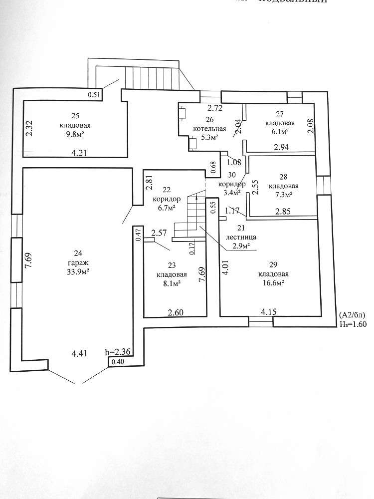 Имеется цокольный этаж, где расположены кладовые, котельная и гараж.