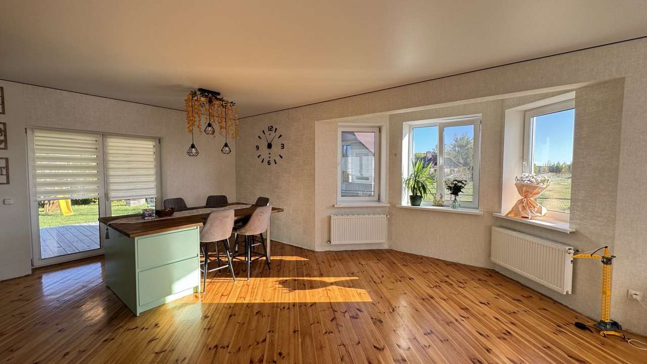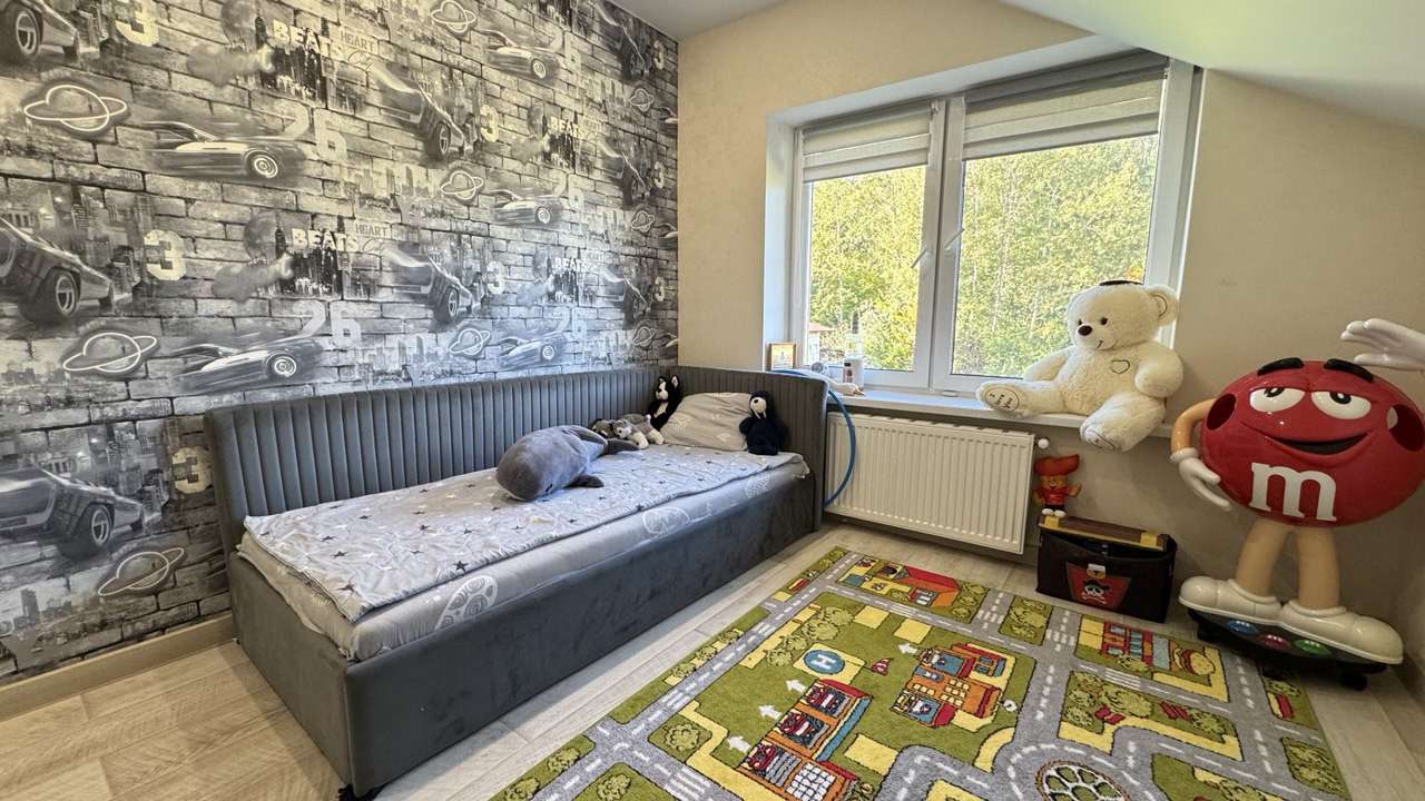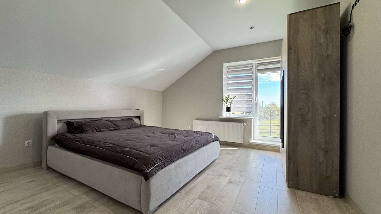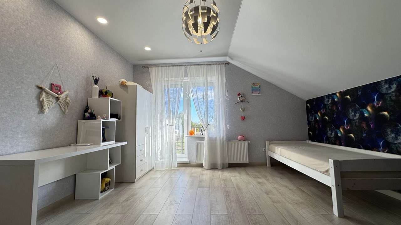 Предлагаем вашему вниманию идеальное место для жизни и отдыха в 8 км от города Гродно в деревне Жукевичи. Просторный жилой дом, полностью готов к проживанию S- 200 м2. На первом этаже расположен холл 12,3 м2, с/у, кухня/гостиная 35 м2 с выходом на террасу 33 м2, жилая комната 12,3 м2; мансарда включает в себя: две детские комнаты 12 и 18,8 м2, а так же спальню 18,2 м2, спальня и детская имеет выход на балкон, ванная комната 11,5 м2 так же с выходом на балкон.