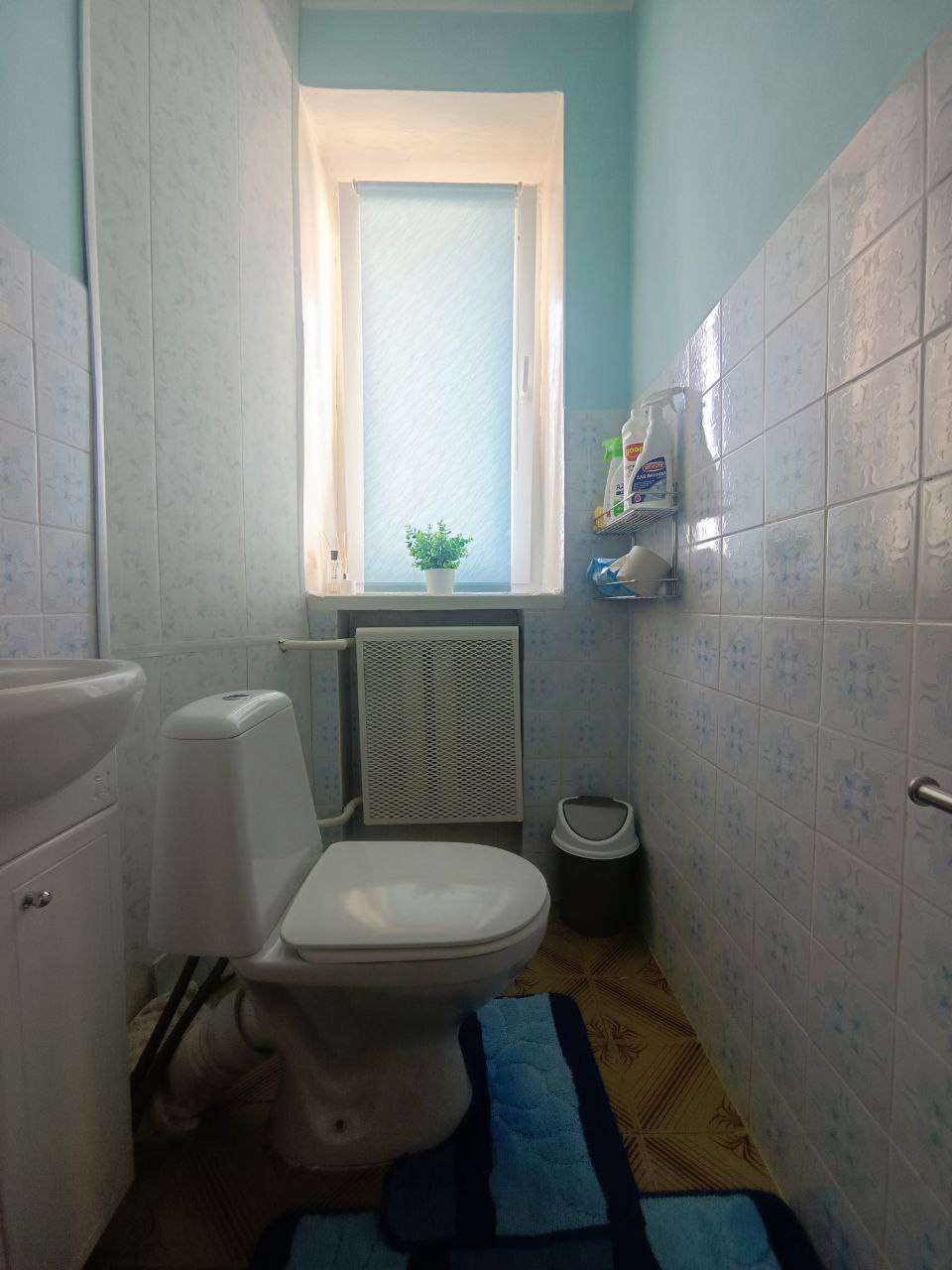 На первом этаже расположен туалет, а на втором - ванная комната.