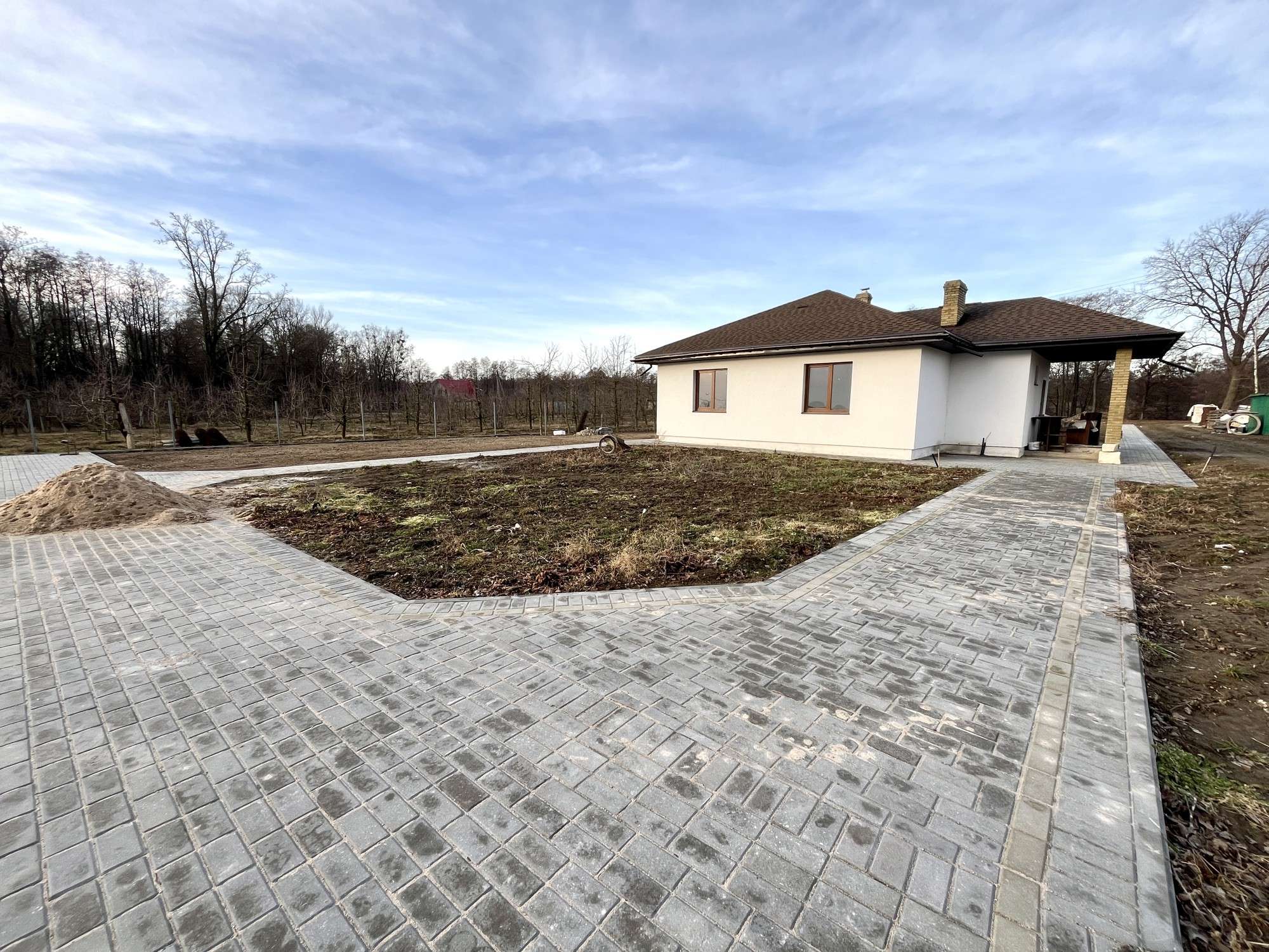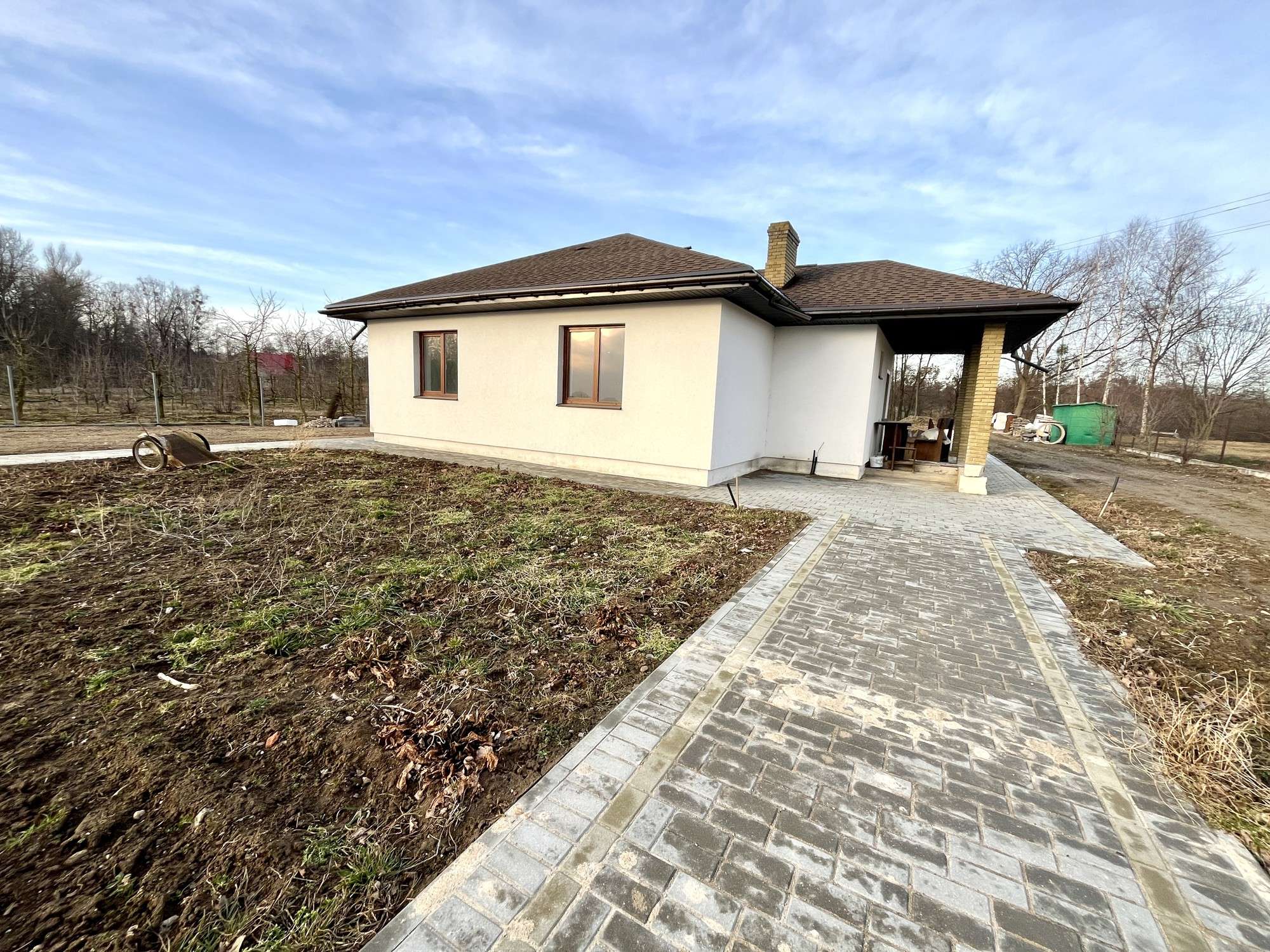 Земельный участок в частной собственности – 0,2475 га. Ровный, прямоугольной формы. На придомовой территории выложена тротуарная плитка. Установлен фасадный забор с распашными воротами.