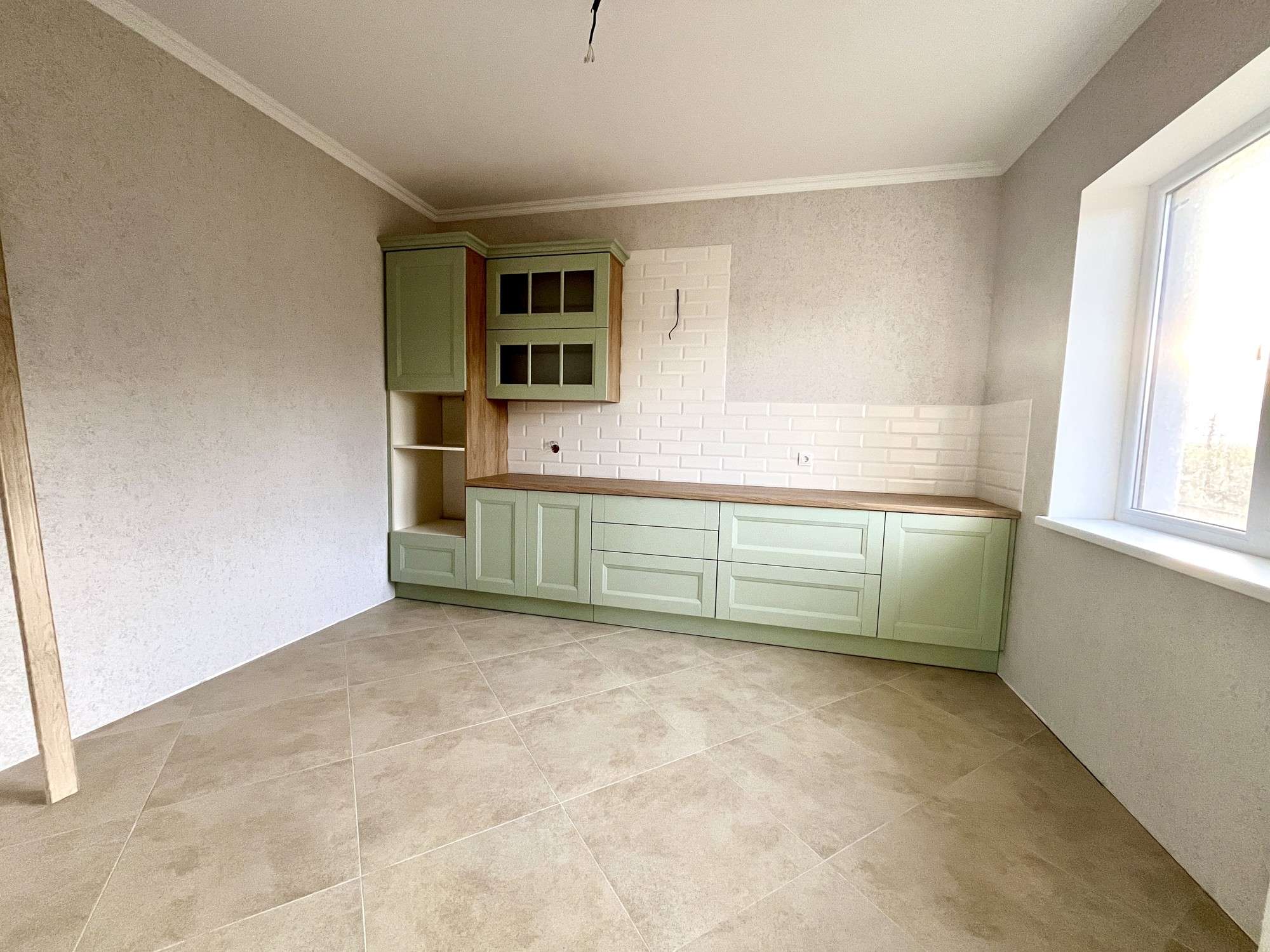 Одноэтажный дом общей площадью 90 кв.м. Внутридомовое пространство включает в себя гостиную с оборудованным камином и выходом на террасу (35 кв.м.), кухню (11 кв.м.), две жилые комнаты( 13 м2 и 10 м2), санузел и топочную. Фундамент – монолит. Стены – газосиликатный блок (40 см)+ утеплитель + финишная отделка. Крыша – гибкая черепица (утеплена). Установлены энергосберегающие стеклопакеты. Великолепный вид из окон дома на реку Котра и лес! Для отопления предусмотрен электрический котел. Канализация - местная, водоснабжение – скважина (48м), электричество 380 Вт. Все коммуникации разведены по дому. Напольное покрытие – плитка, ламинат, материал стен – декоративная штукатурка, потолки выровнены, окрашены. Установлен кухонный гарнитур из массива дерева фирмы Geos Ideal. Санузел облицован плиткой.