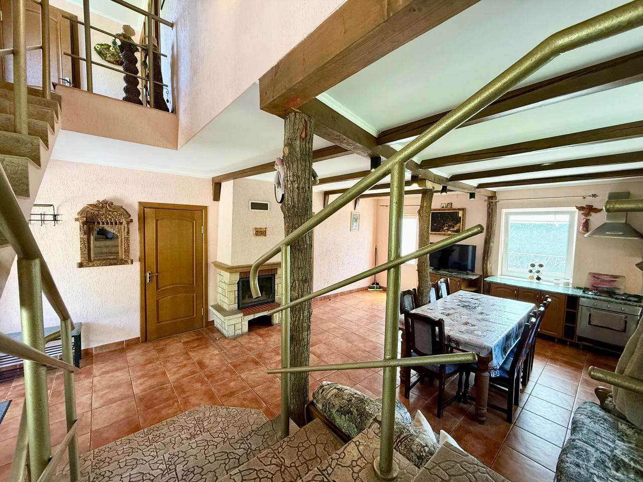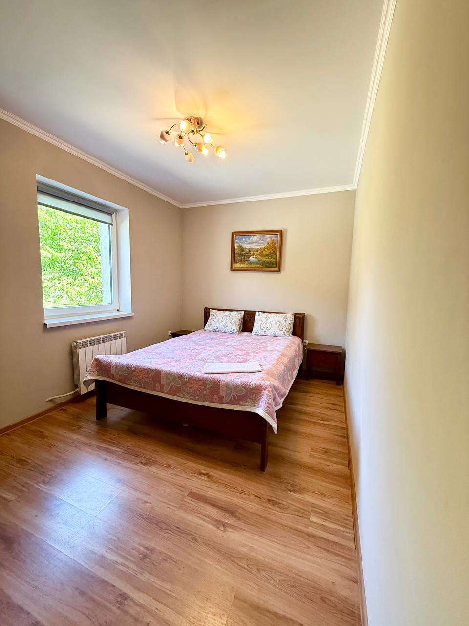 Общая площадь 138,1/ жилая 76,4/ кухня 34 м/кв, состоит из 5 комнат: 3 на первом этаже, 2 на втором и в цоколе бильярд, котельная, гостиная совмещенная с кухней и выходом на большую террасу.
