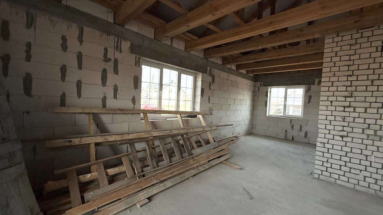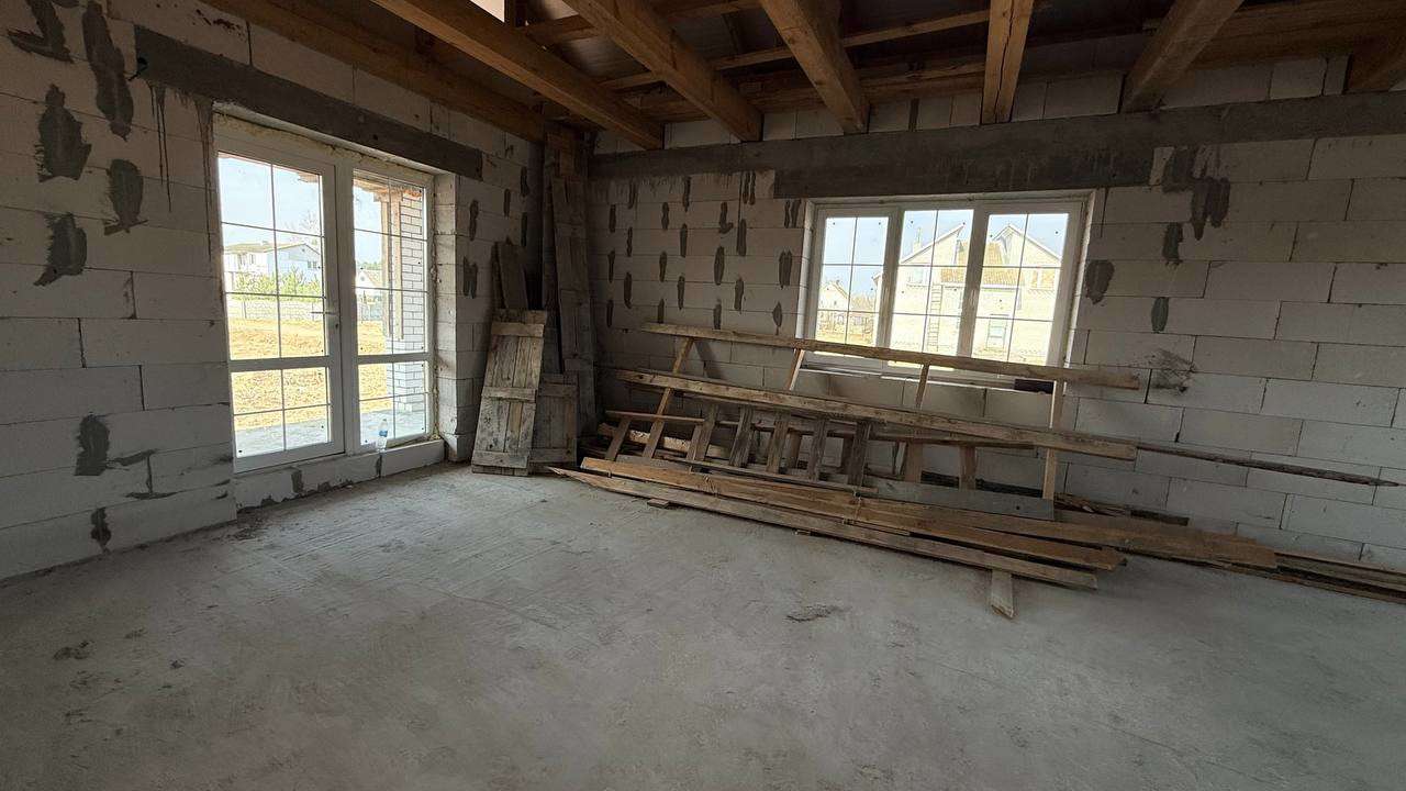 Дом одноэтажный 2025 года постройки, общая площадь 120, жилая 44 и кухня-гостиная 38 м/кв, состоит из 3-х изолированных комнат и просторная гостиная совмещенная с кухней 38 м/кв, большая терраса 16 м/кв, 2 санузла. Крыша - металочерепица, сделаны отливы и водосточная система, окна-стеклопакеты ПВХ, фундамент монолитный, по дому сделана вся разводка воды и канализации.