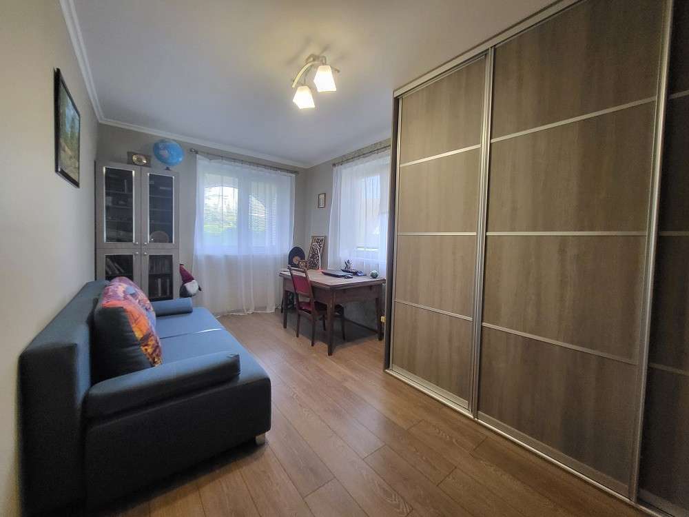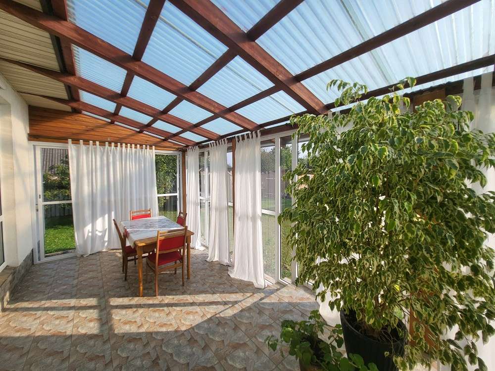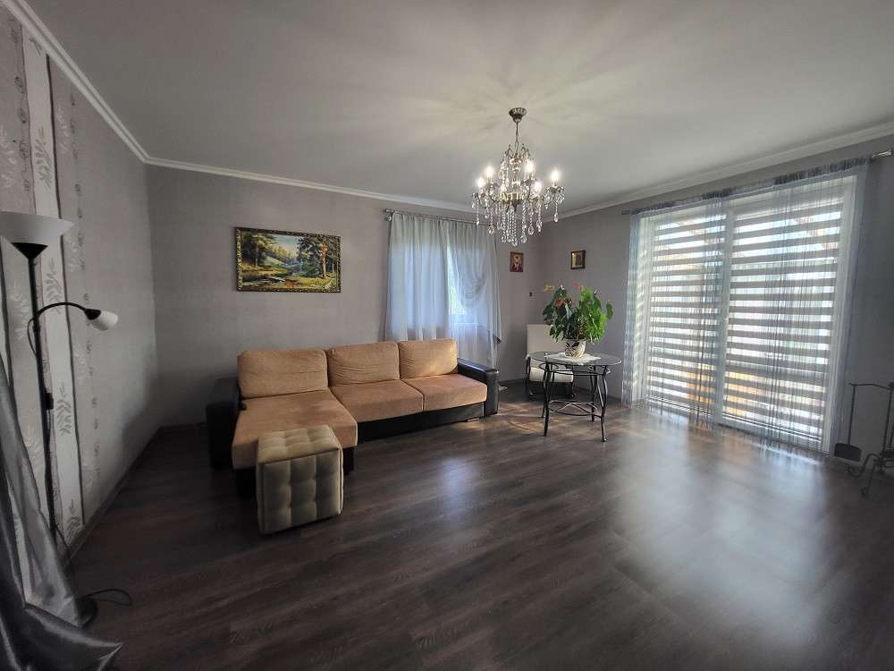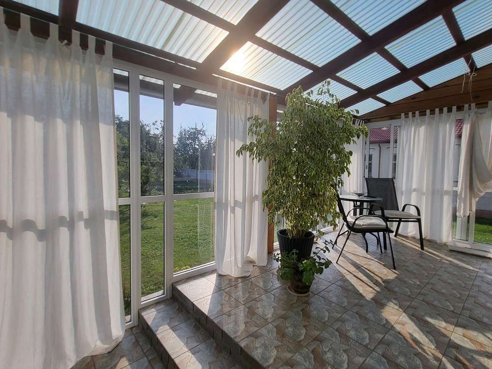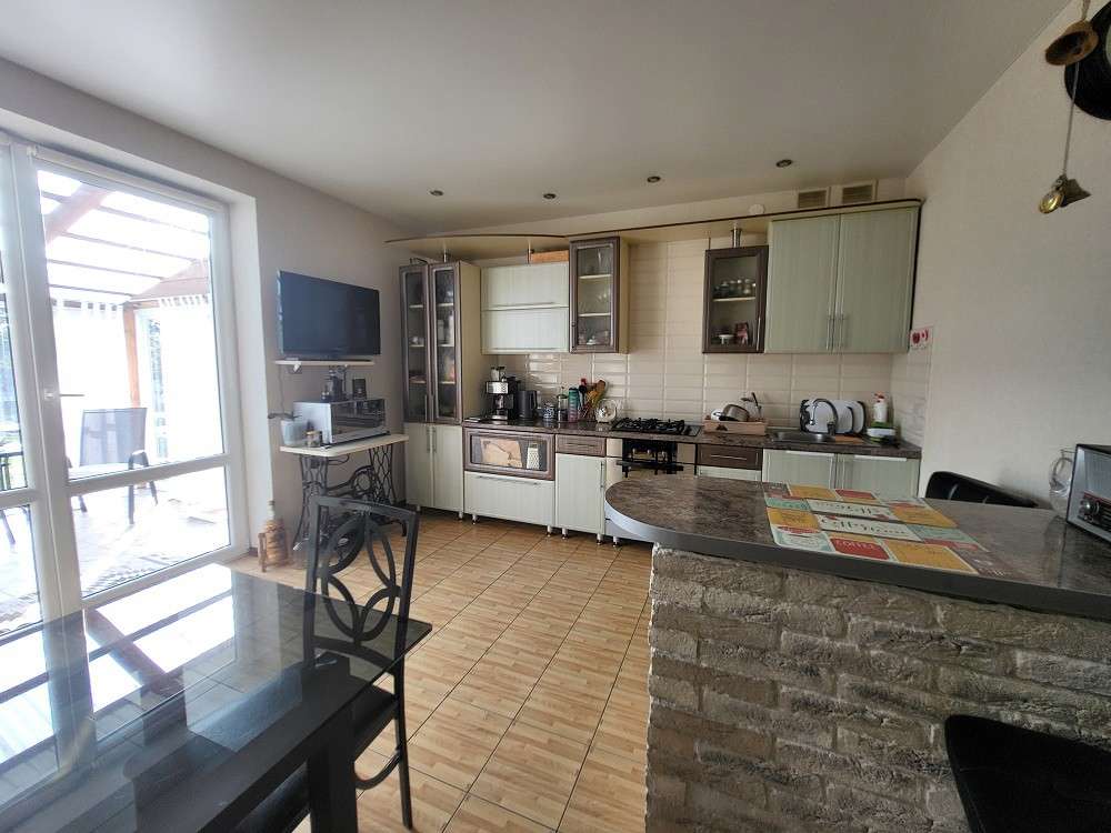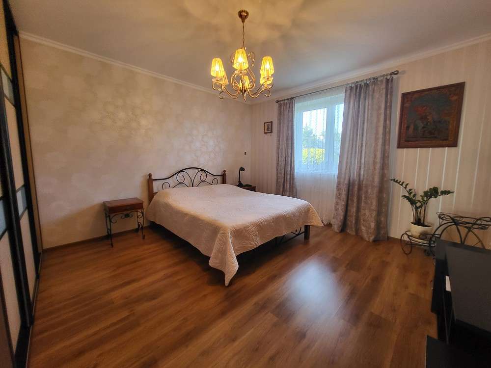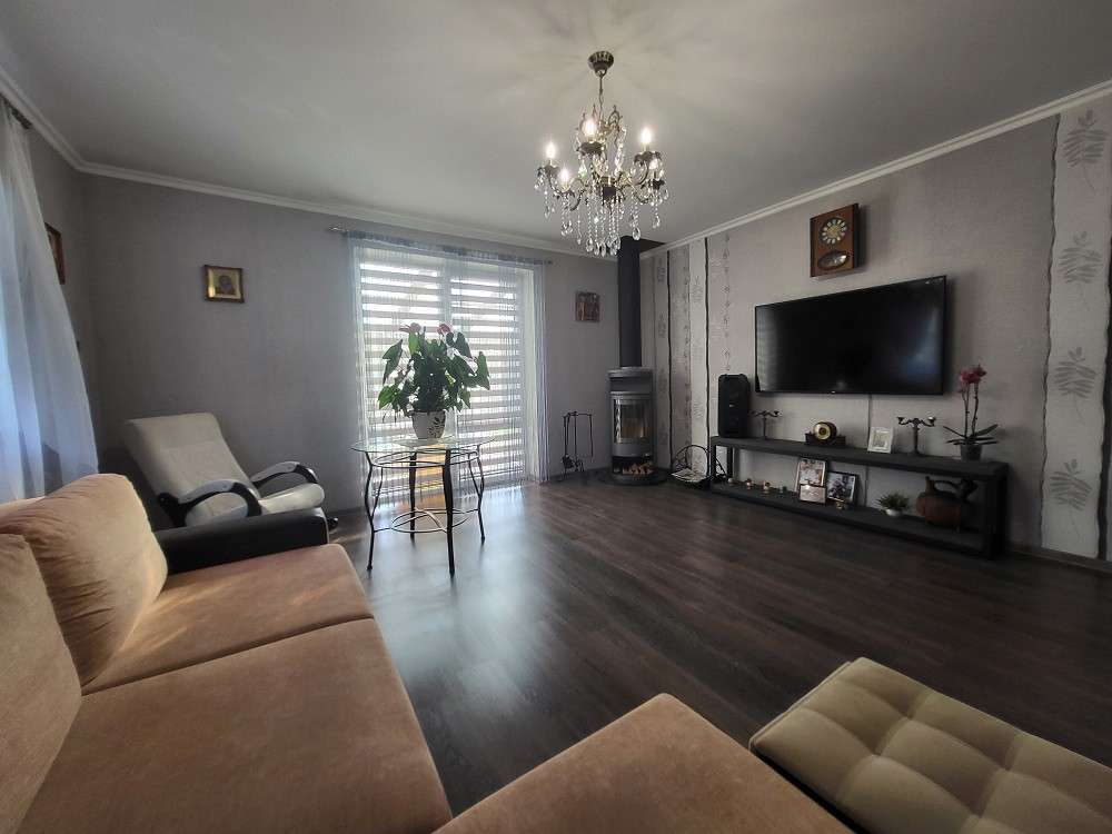 Три раздельные комнаты и просторная кухня, раздельный санузел, топочная, отапливаемый гараж площадью 23.4 м.кв. Большая терраса с видом на прилегающий участок.