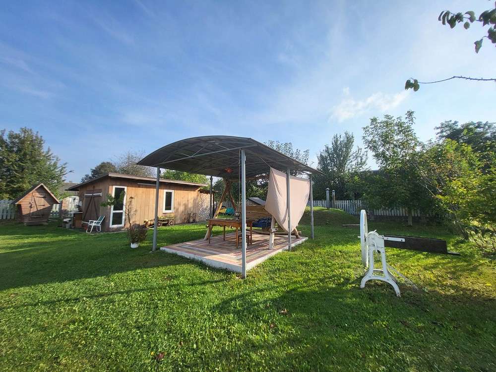 Аккуратный и ухоженный участок. 15 сток в частной собственности. Огорожен забором, с уникальным ландшафтным дизайном, засеян газоном, высажены плодовые и декоративные насаждения. Металлические раздвижные ворота. На участке имеется хоз. помещение и навес для автомобиля. Оборудованная зона отдыха – беседка.