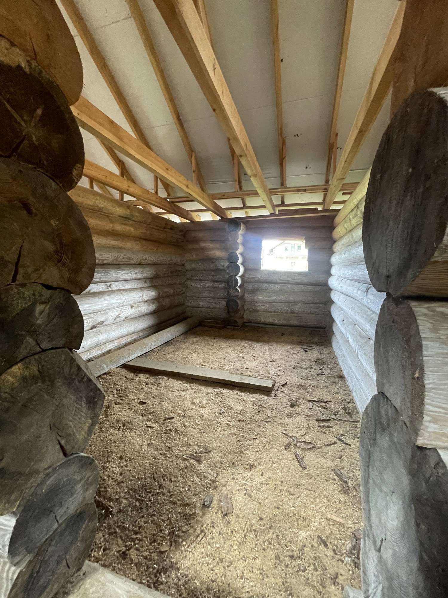 Дом с мансардой выполнен по технологии рубки сруба "в русскую чашу", что обеспечивает и сохраняет отличные тепло- и звукоизоляционные характеристики. Пазы в местах соединения бревен способствуют лучшему удержанию тепла внутри помещения и снижению внешнего шума. Материал дома - сосна, рубка осуществлялась в зимний период. Кровля - металлочерепица польского качества, на мансардном этаже установлены окна ПВХ.
