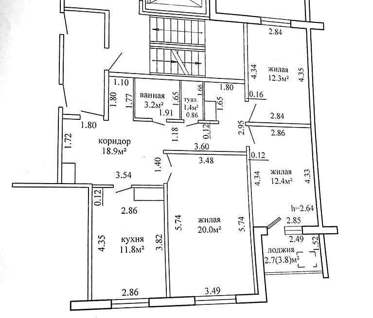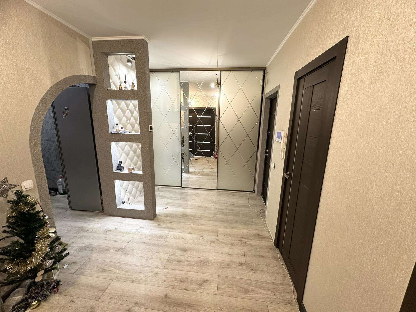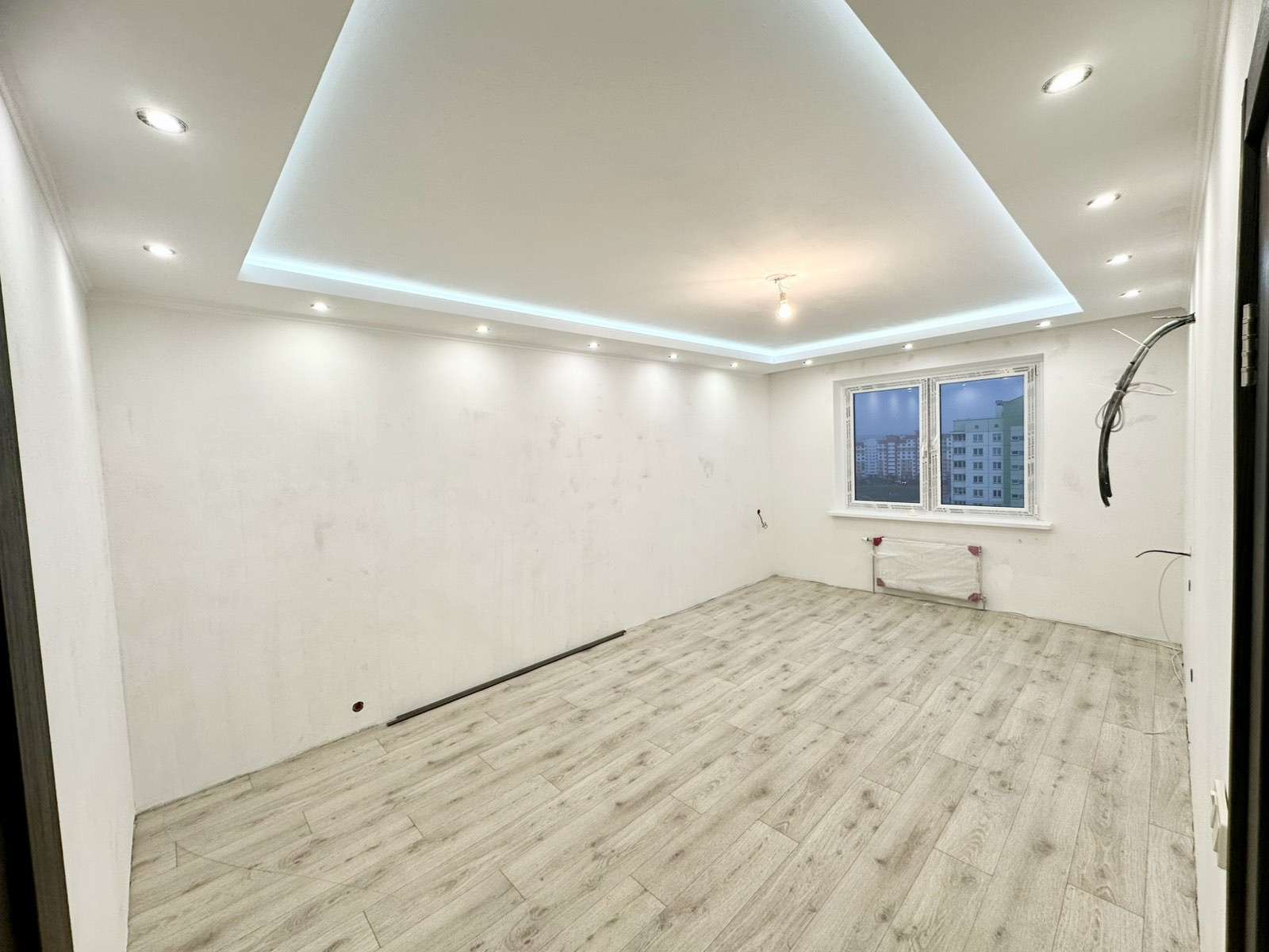 9 этаж 10-тиэтажного дома 2017 года постройки, материал стен – панель. Общая площадь 80,0 кв.м., жилая 20,0 кв.м., кухня 11.8 кв.м. Окна – ПВХ. Сан. узел раздельный, облицован плиткой. Материал полов – линолеум.