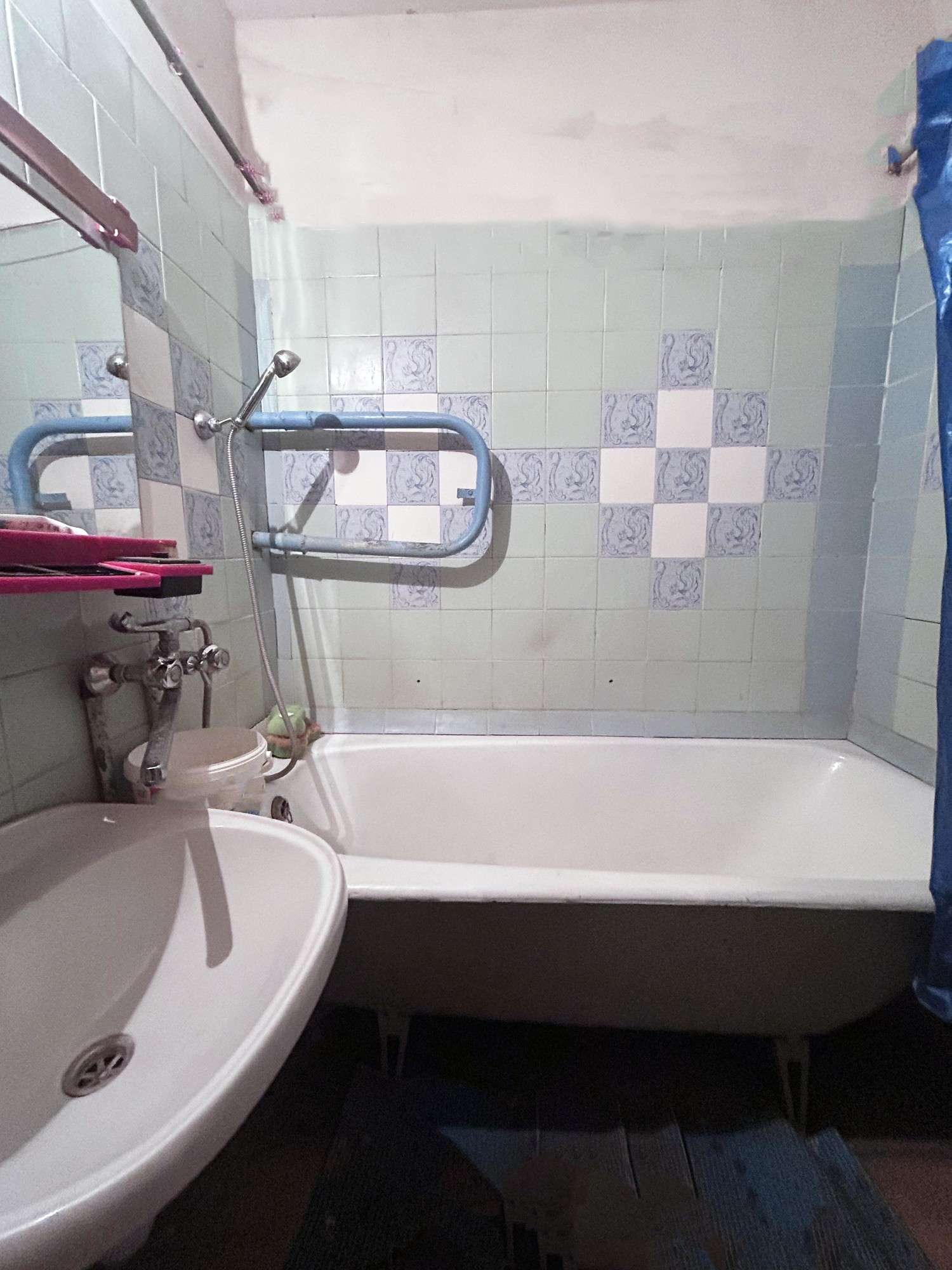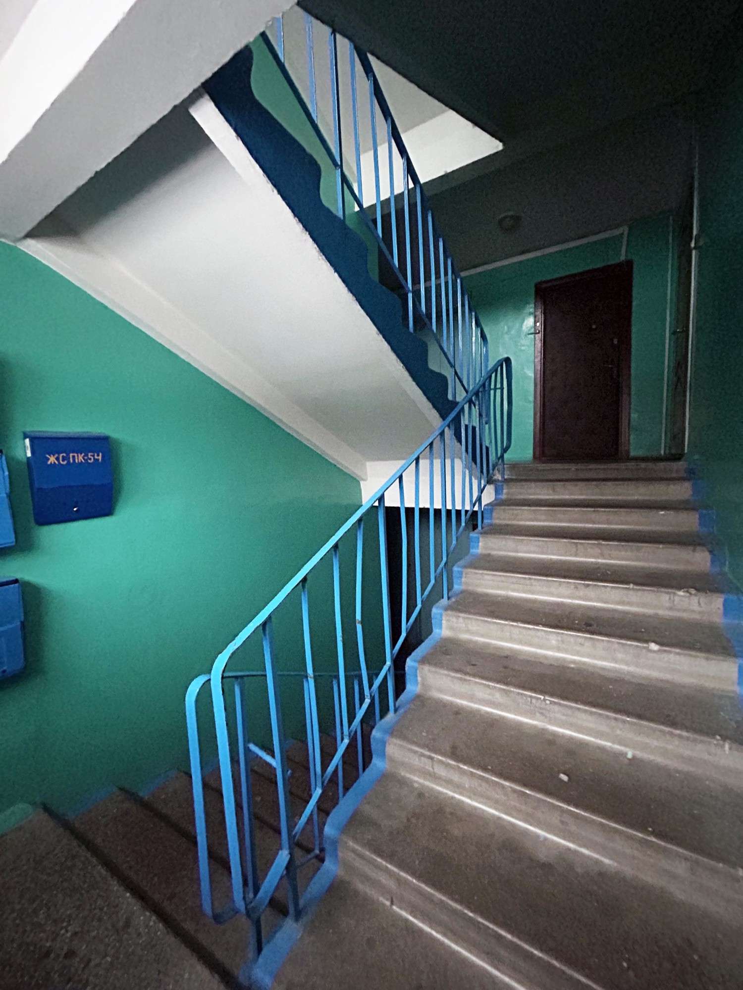 Квартира в простом жилом состоянии, без современного ремонта. Чешская планировка с тремя изолированными комнатами. Есть две кладовые. Стены оклеены обоями, потолки окрашены, полы ДВП. Двустворчатые деревянные окна. Установлены счетчики на воду. Входная дверь металлическая.