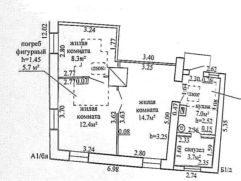 Продается 1/2 доля дома в самом центре Дятлово, площадью 46.1 м2, 3 комнаты, санузел и кухня. Имеются 2 подвала.