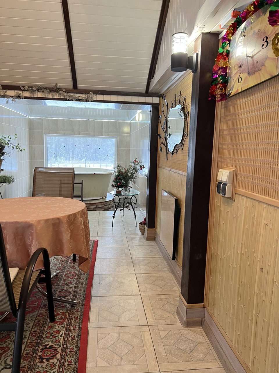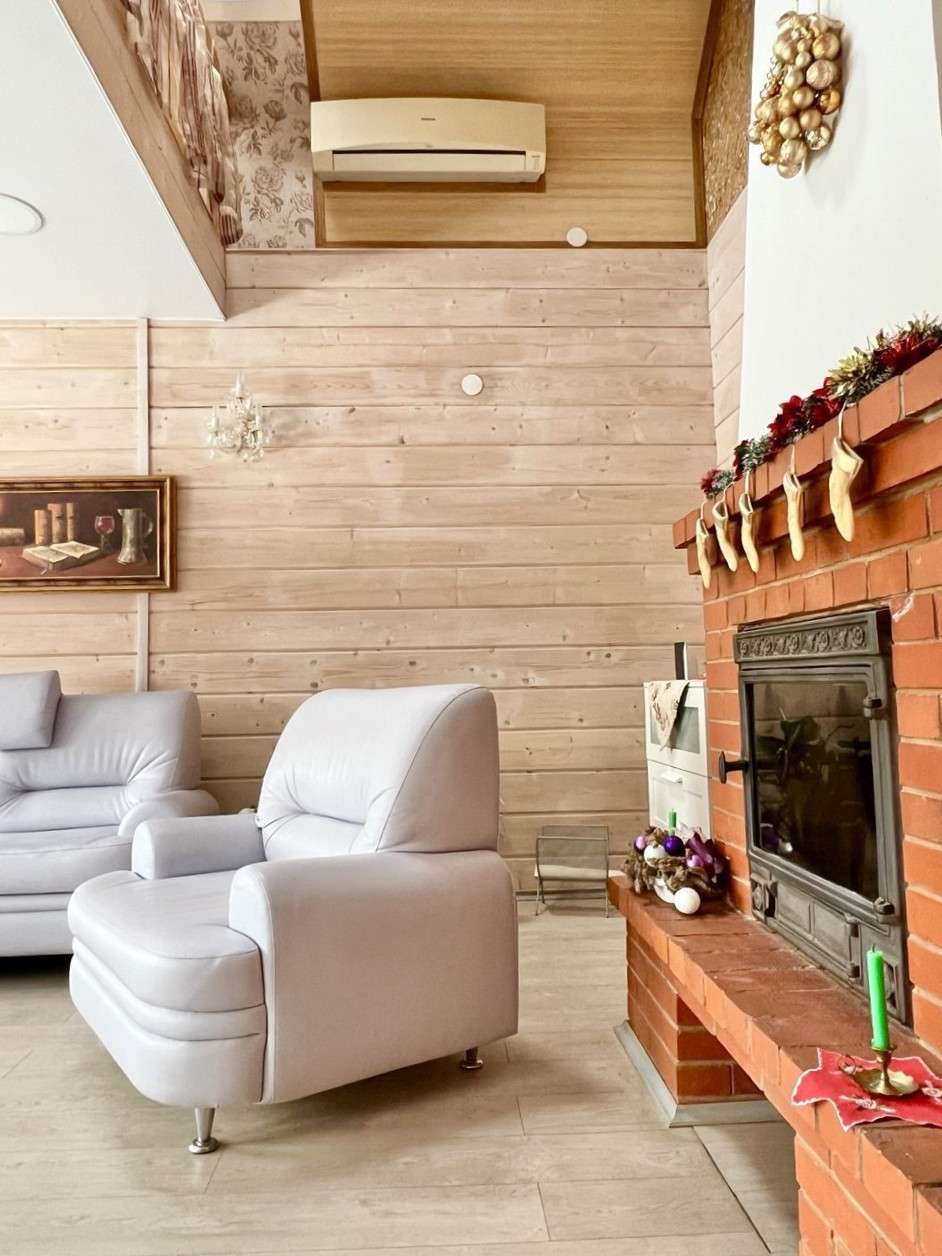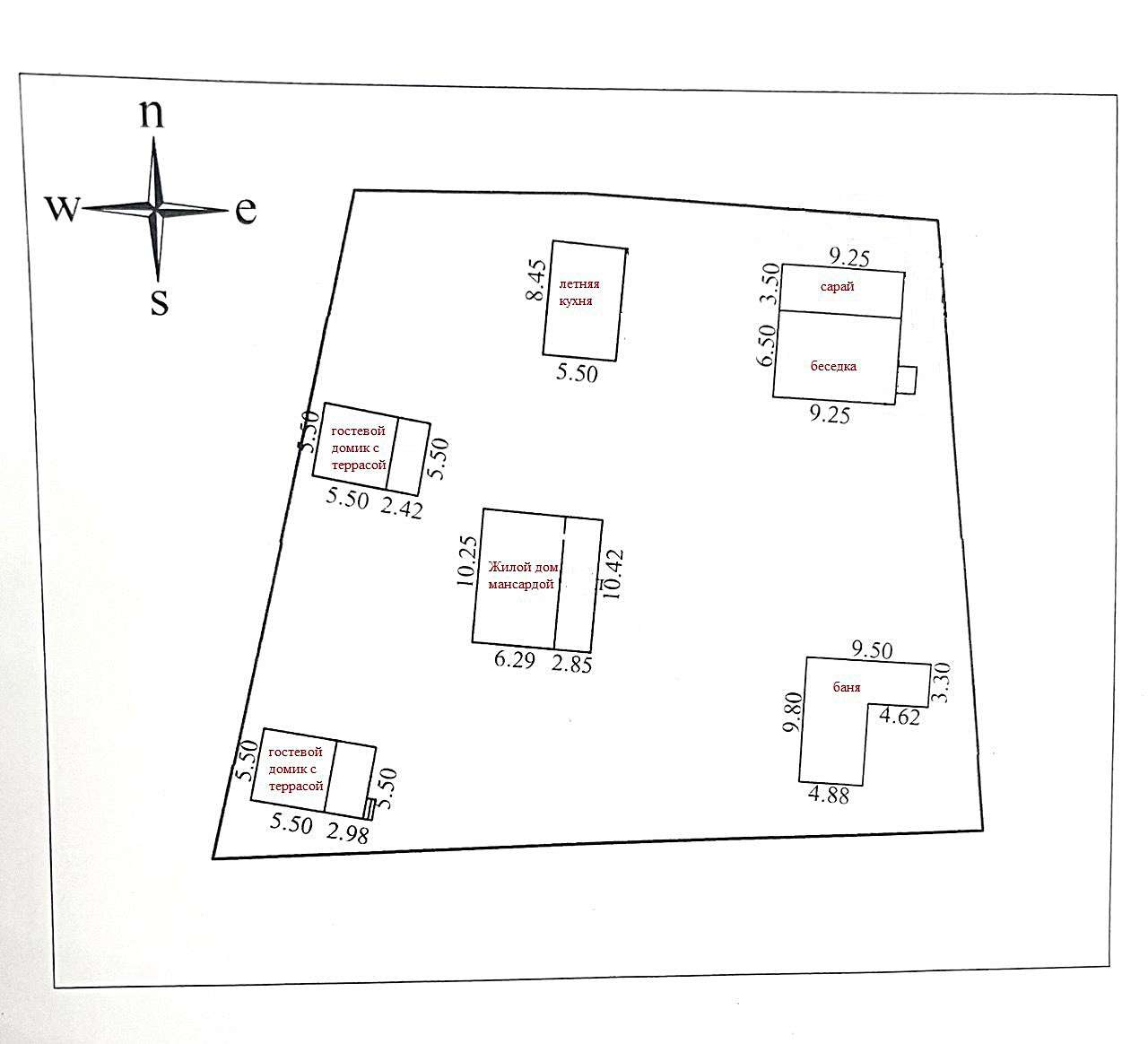 три дома: один – основной с мансардой и два гостевых с террасами. Наружные стены и отделка – всё из натуральных, древесных материалов, окна ПВХ, пол частично уложен натуральной доской, частично плитка, крыша – металлочерепица. В основном доме оборудована печь-камин, электроотопление, водонагреватель, кондиционер. На первом этаже находится кухня с установленной бытовой техникой, индукционная плита, посудомоечная машинка. Также находится просторный зал с атмосферным камином, раздельный с/узел, на втором этаже – спальные две комнаты. В гостевых домиках пол – плитка c подогревом, общей площадью по 30 кв.м., основной дом – 64 кв.м. Год постройки домов – 2018 г. Также на территории имеется летняя кухня, площадью 46 кв.м, оборудована с/узлом, печью, бытовая техника, год постройки 2018. Имеется также беседка, используется для корпоративных мероприятий, вместительностью до 30 человек. В беседке витражные окна, материал стен – блок, крыша – металлопрофиль, общ. пл. помещения 60 кв.м. с установленной внутри мангальной зоной для комфортного проведения отдыха. Отдельное внимание уделяется бане, так как это не только сауна, но и наличие привлекательной купели с видом на просторы местности. В бане имеются сауна, с/у с установленной техникой, комната для отдыха. Беседка и баня были оборудованы для пользования с 2024 года. С задней части беседки построен вместительный сарай из блока, общ. пл. 32 кв.м., приспособлен для хранения хоз.инвентаря. Предусмотрена зона для активных игр детей. Также отдельно обустроена зона барбекю для отдыха под открытым небом с интересным оформлением из камня.