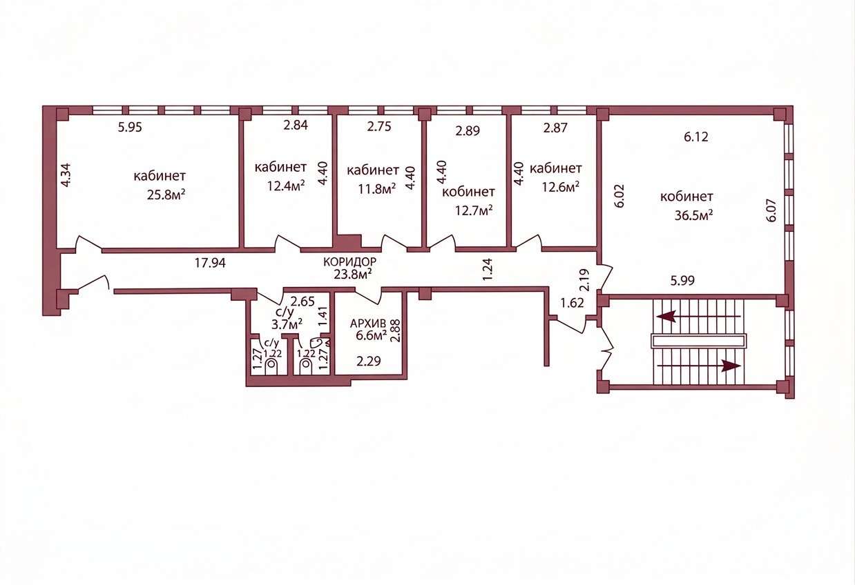 Практически все кабинеты сдаются в аренду и могут продолжать приносить стабильный доход уже новому владельцу. А можно разместить здесь свой бизнес.