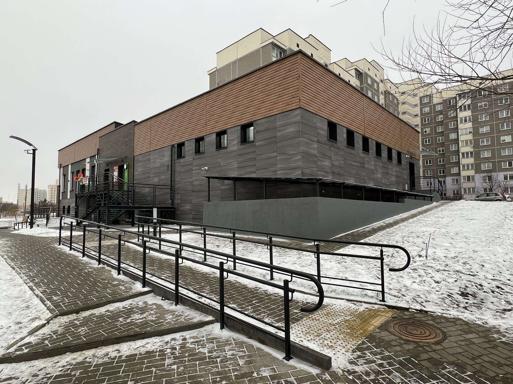 Здание 2-этажное, новое, построено лето 2022 года, материал стен –кирпич, наружная отделка – керамогранит и клинкерный кирпич, коммуникации все центральные, здание работает автономно со своим теплоузлом и электрощитовой.