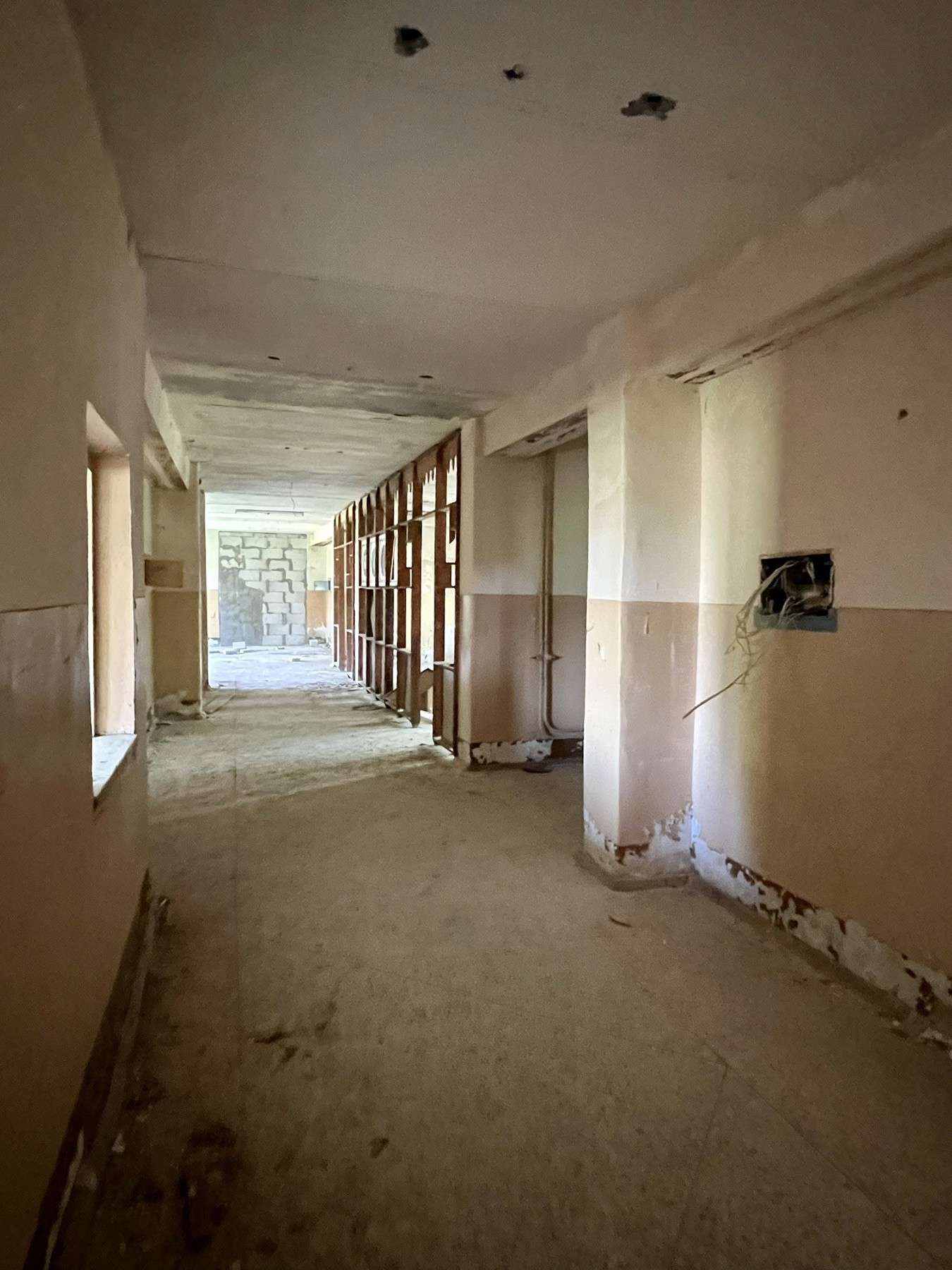 Здание общей площадью 1 286 кв.м., двухэтажное, состоит из нескольких корпусов, бетонные перекрытия, год постройки 1990, канализация местная, центральный водопровод, есть 380 В, 50 кВт, отопление собственным котлом на твердом топливе.